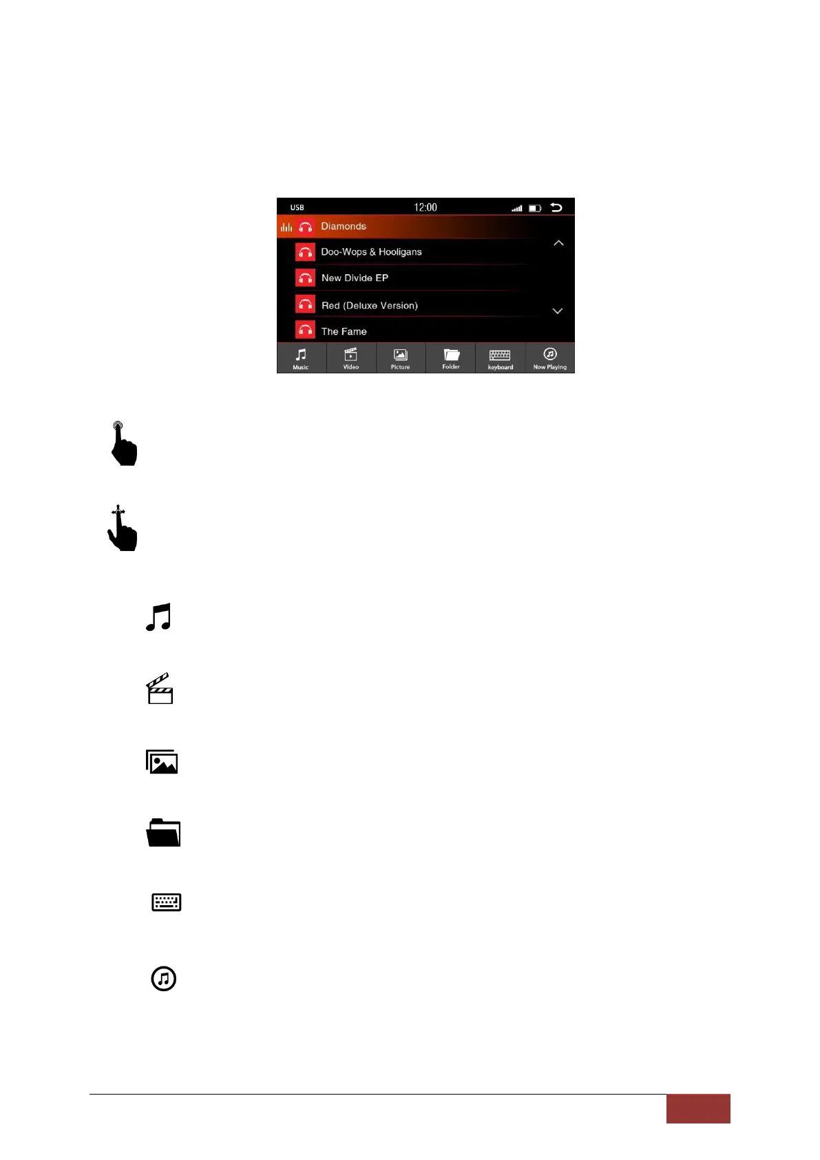 With an up and down scrolling motion, you can search the songs, artists, or playlists in the