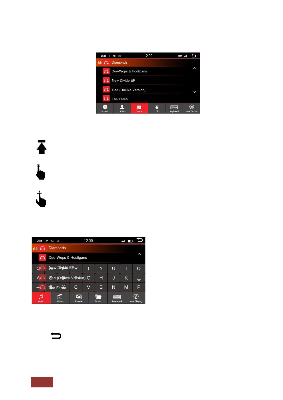 If you select the Song menu, you will see all songs (with titles) that are stored like the picture above.