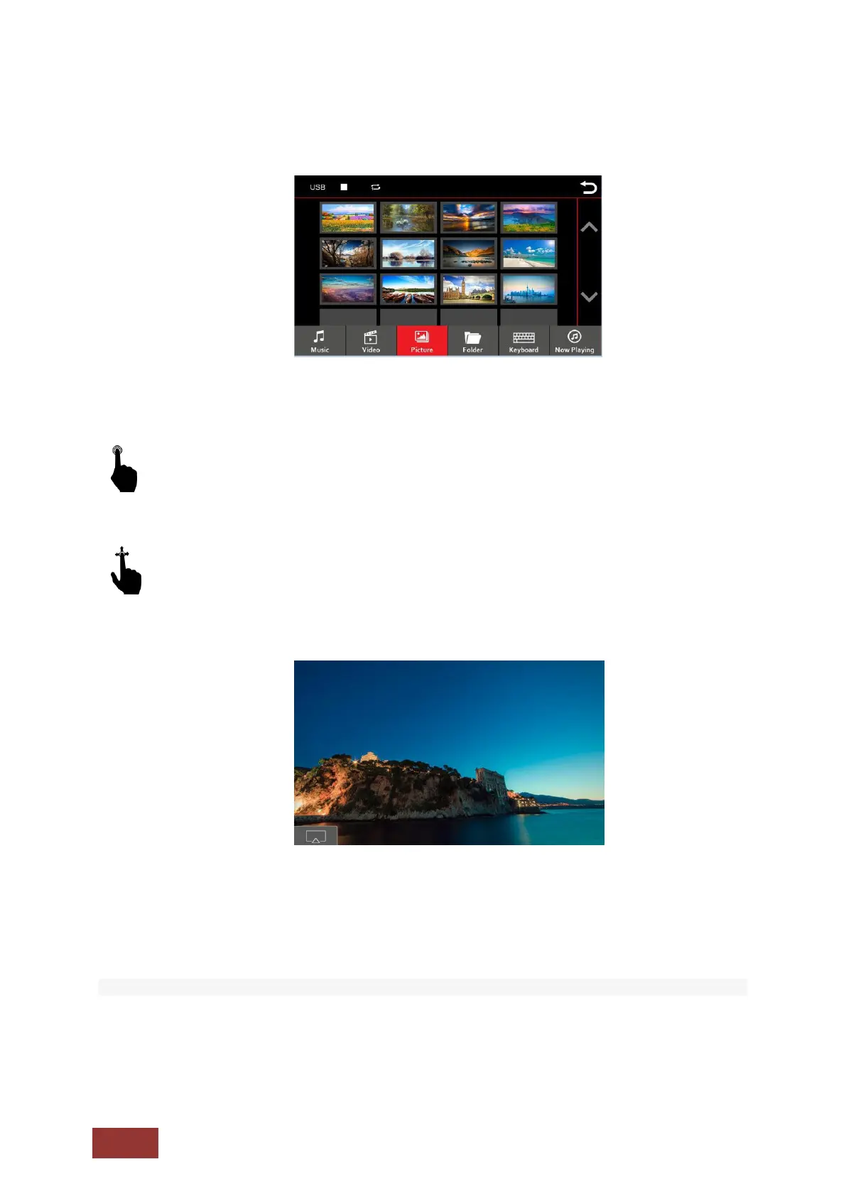 A short press on one of the pictures will be displayed.