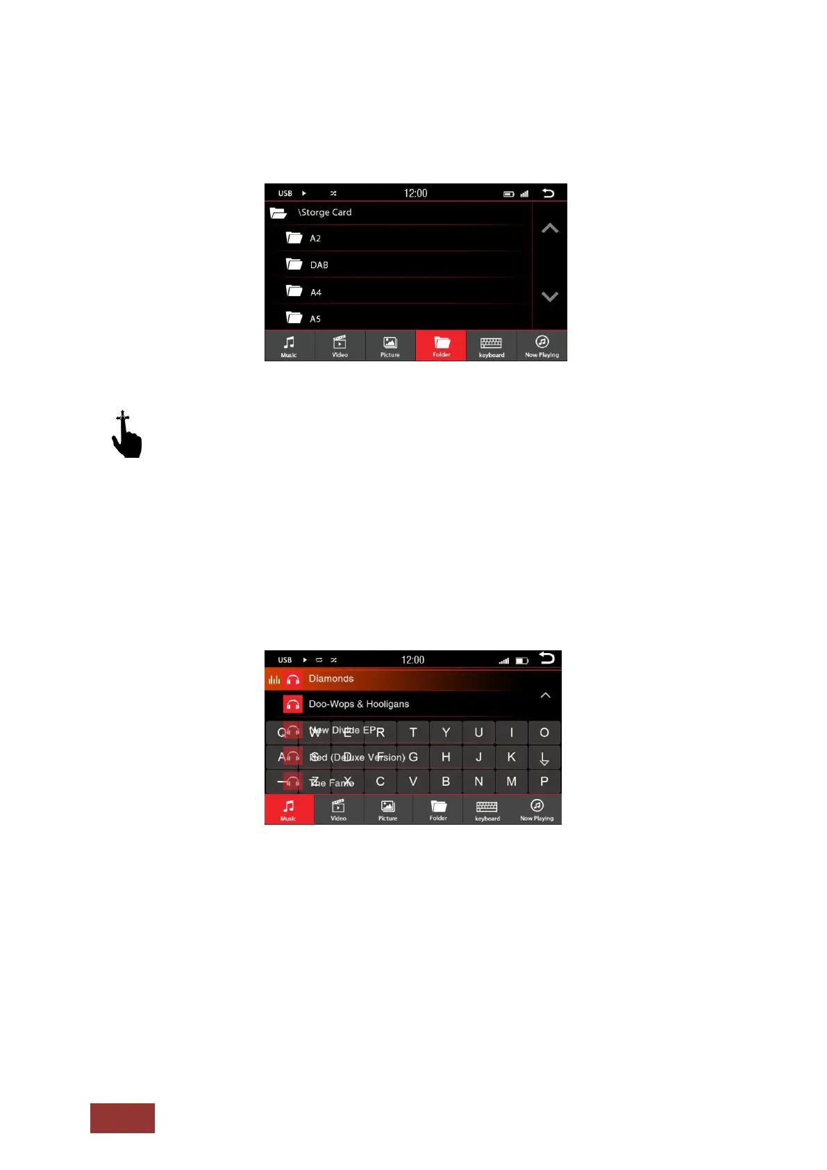 With an up and down motion, you can scroll to browse through the folders in the displayed