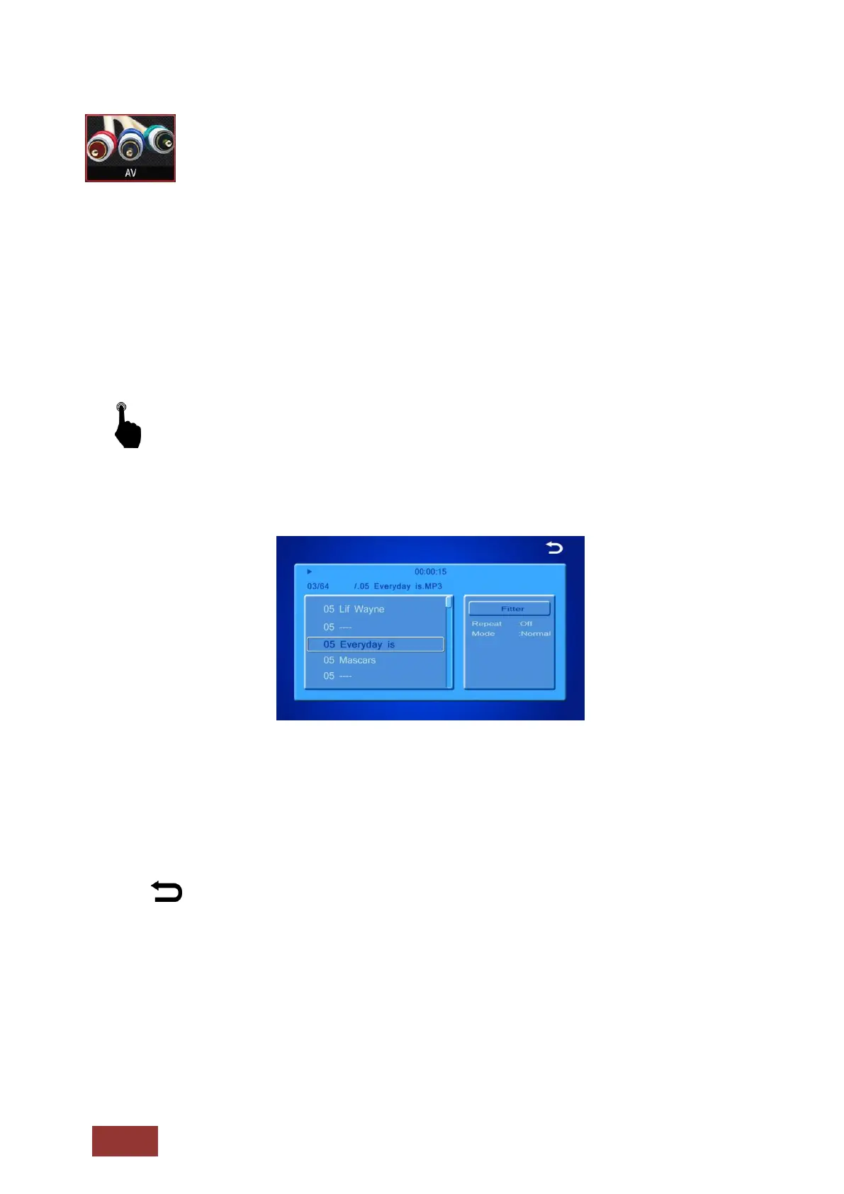 In the Main Menu, scroll to the page with the AV icon and select it with a short press.