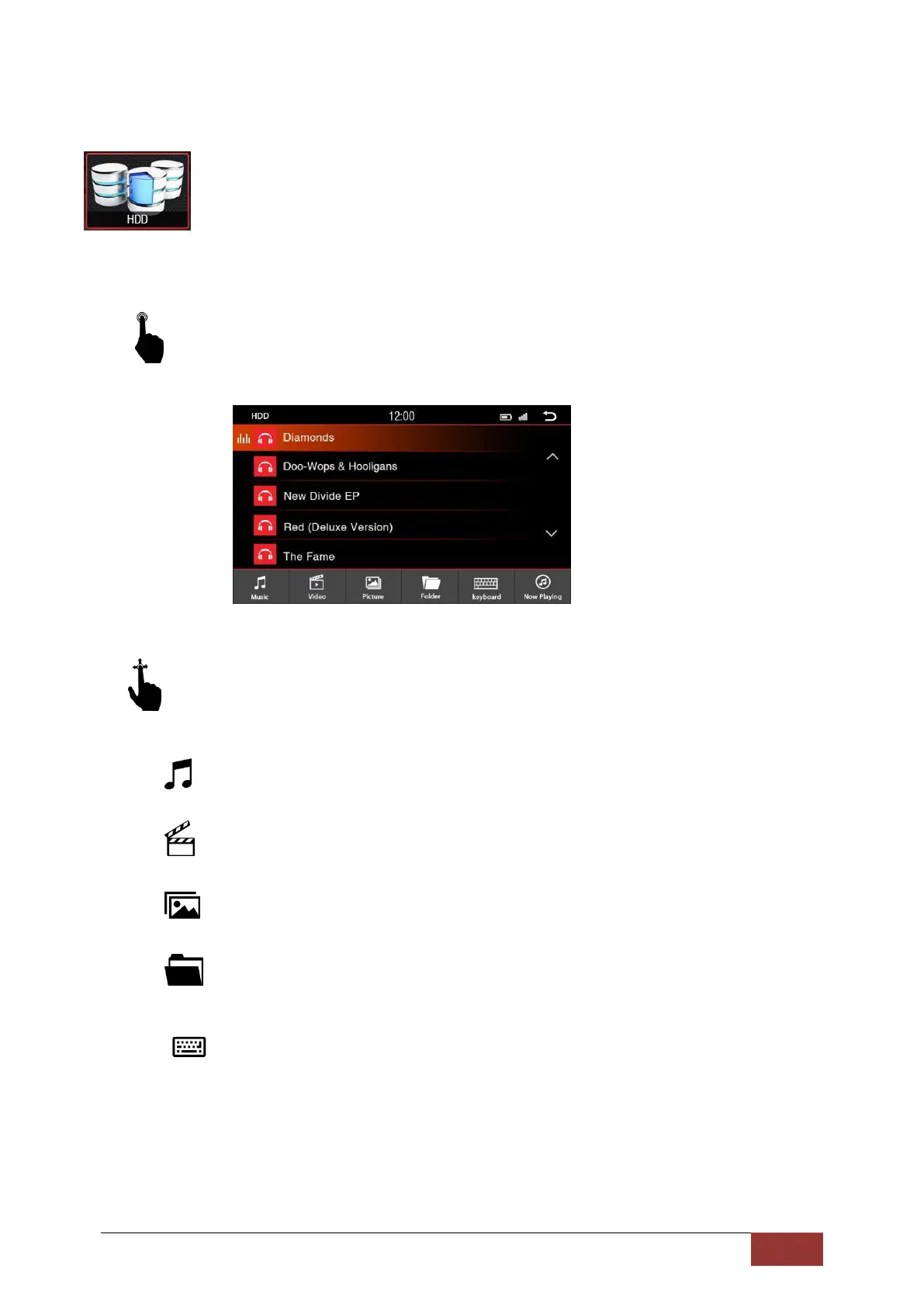 In the Main Menu, scroll to the page with the HDD icon and select it with a short press.