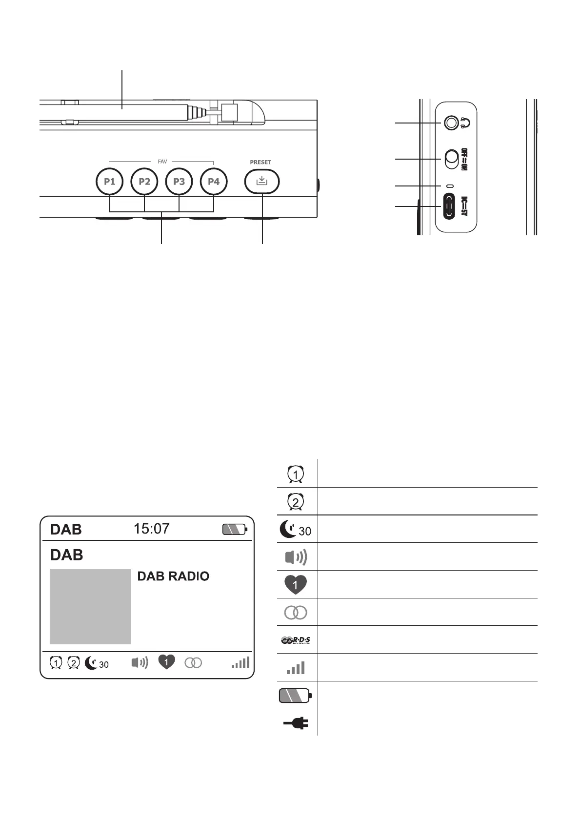 9. Antenne télescopique 10. Bouton sélection Favoris