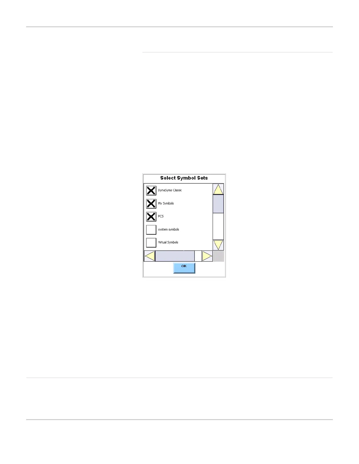5. Select the OK button to close the Select Symbol Sets menu.
