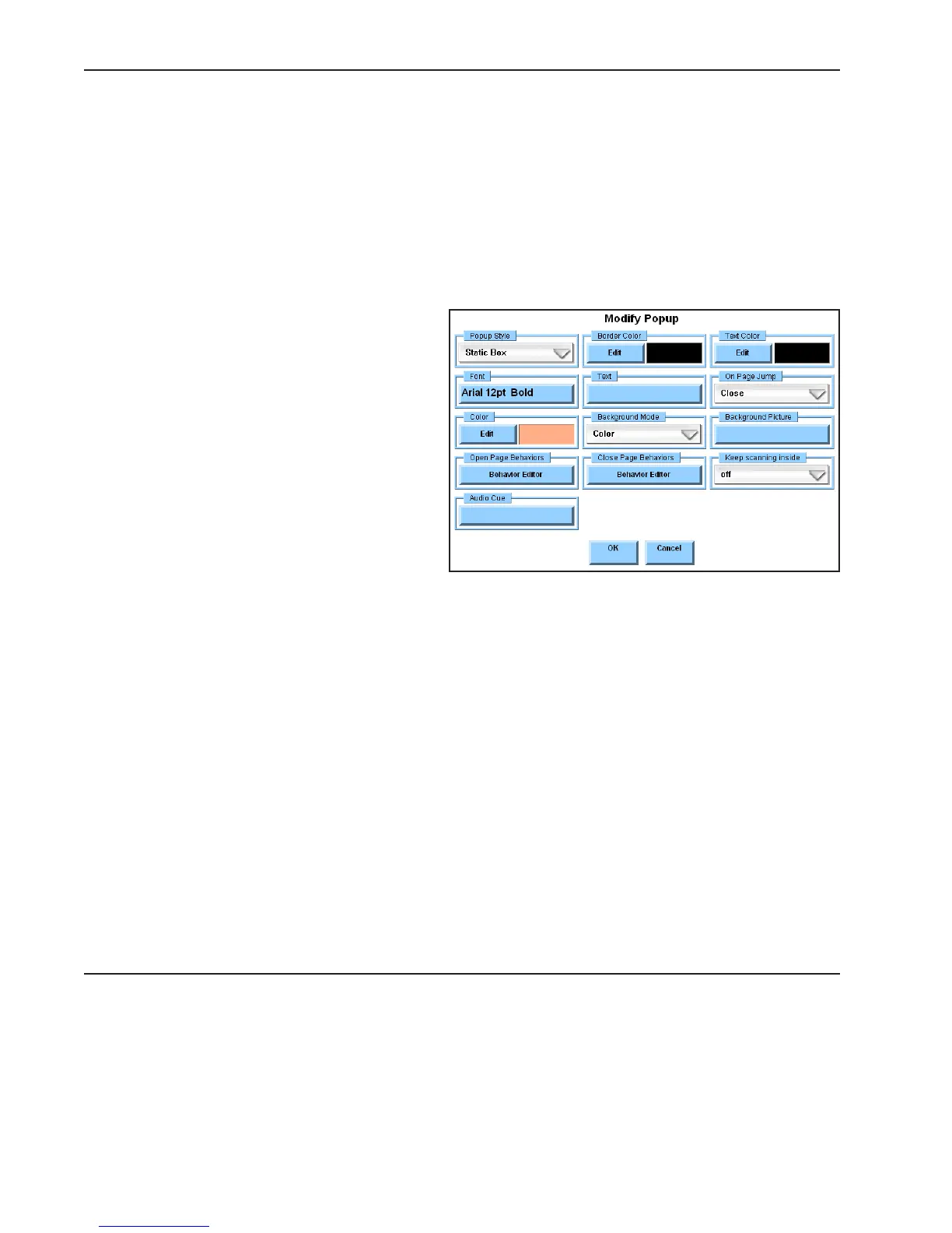 Color - Select the Edit button in the Color group box to define the background color of the popup.