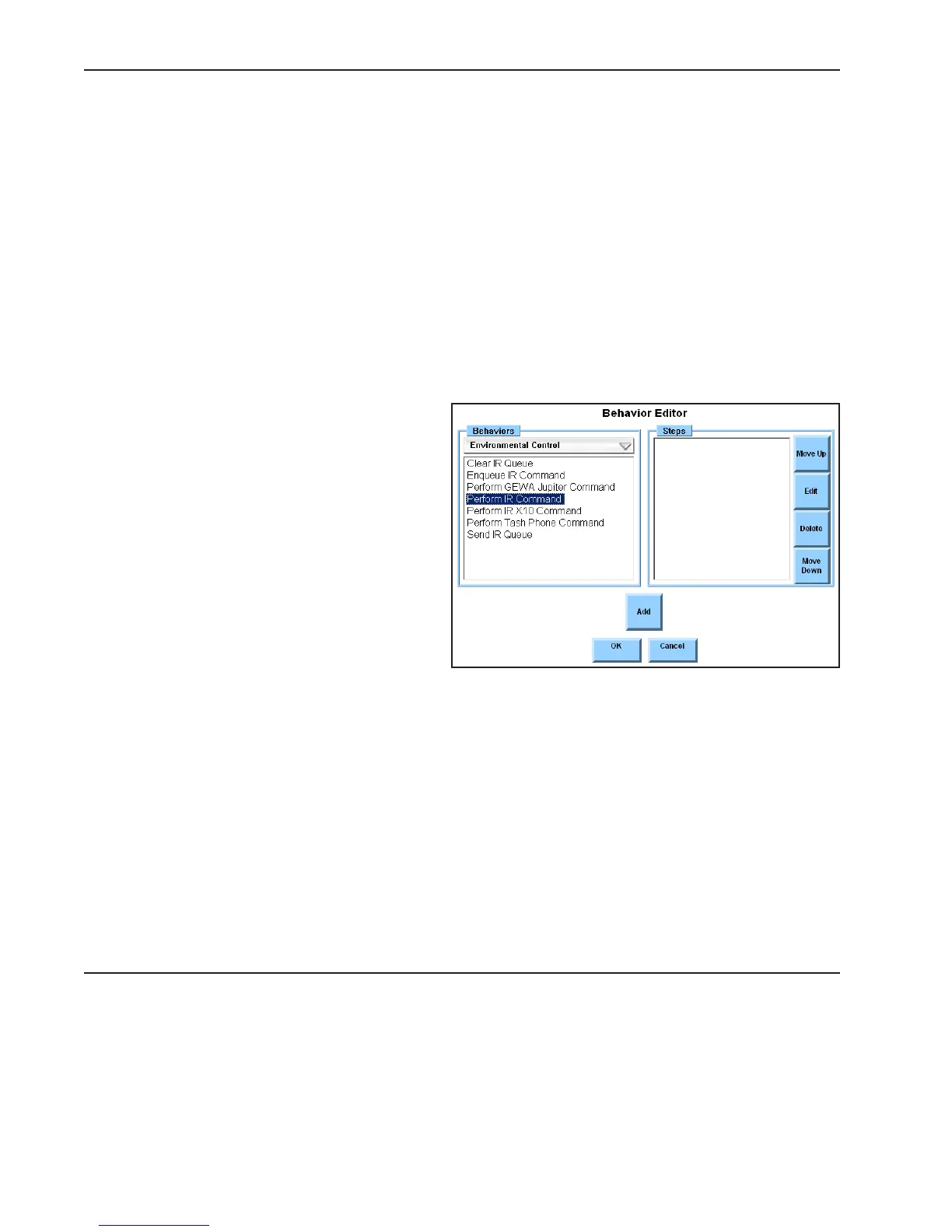 10. Select the OK button to close the Behavior Editor menu. The Perform IR Command behavior