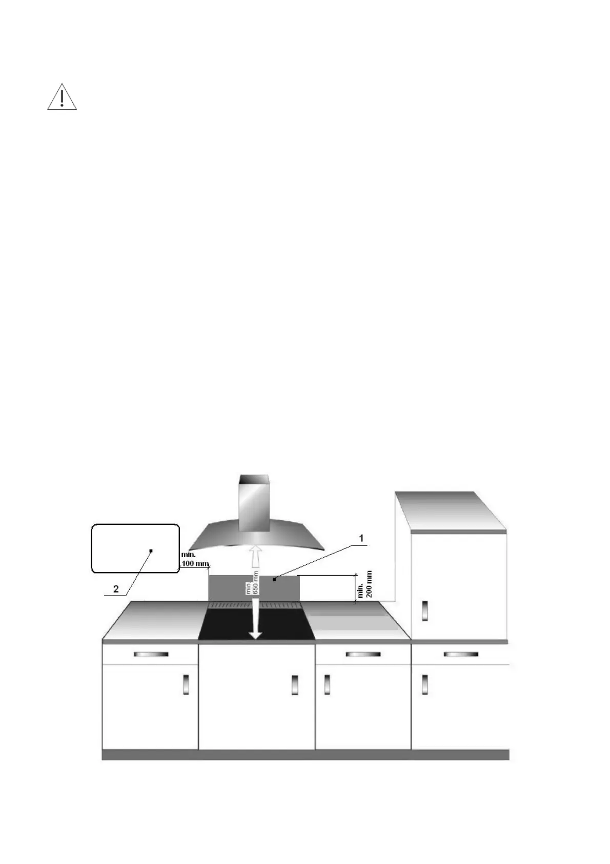 • Der Abstand von den Seiten der Kochplatte und dem Fenster muss wenigstens 100 mm betragen.