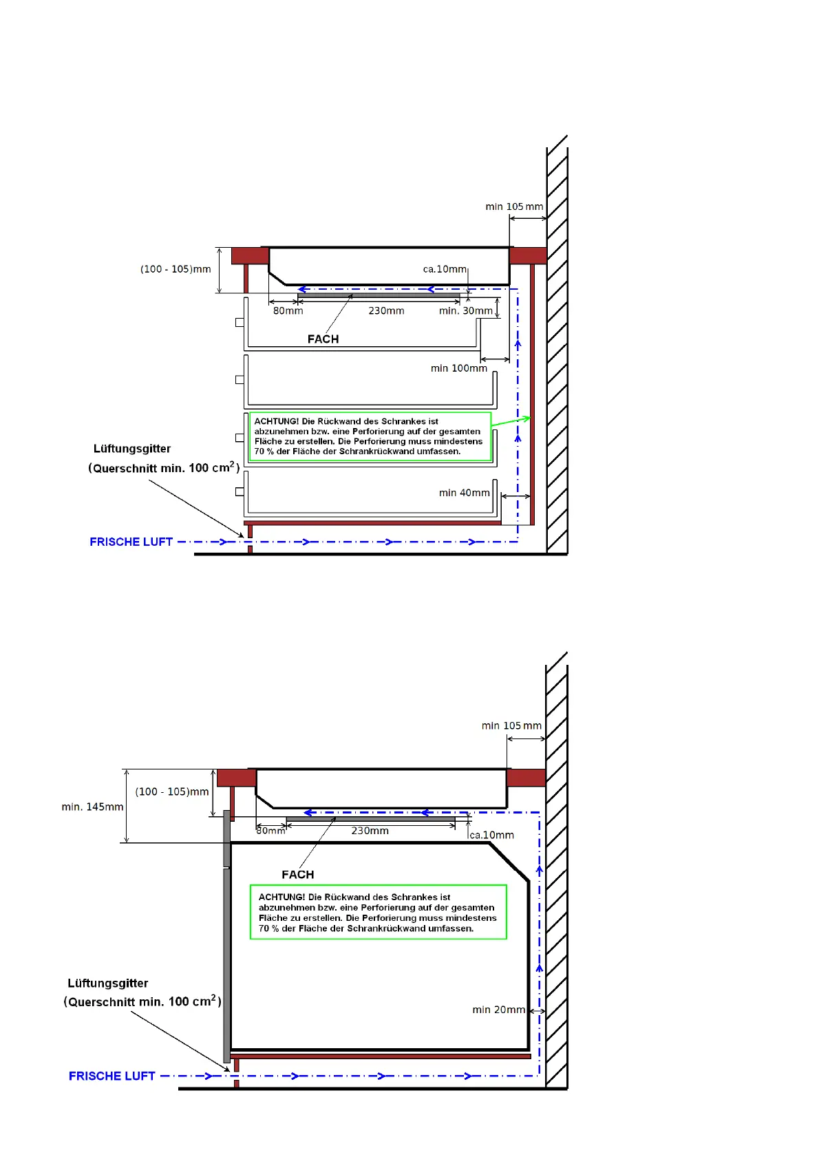 entsprechende Lüftung der Kochplatte durch die Erfüllung der Bedingungen gemäß (Abb. 8)
