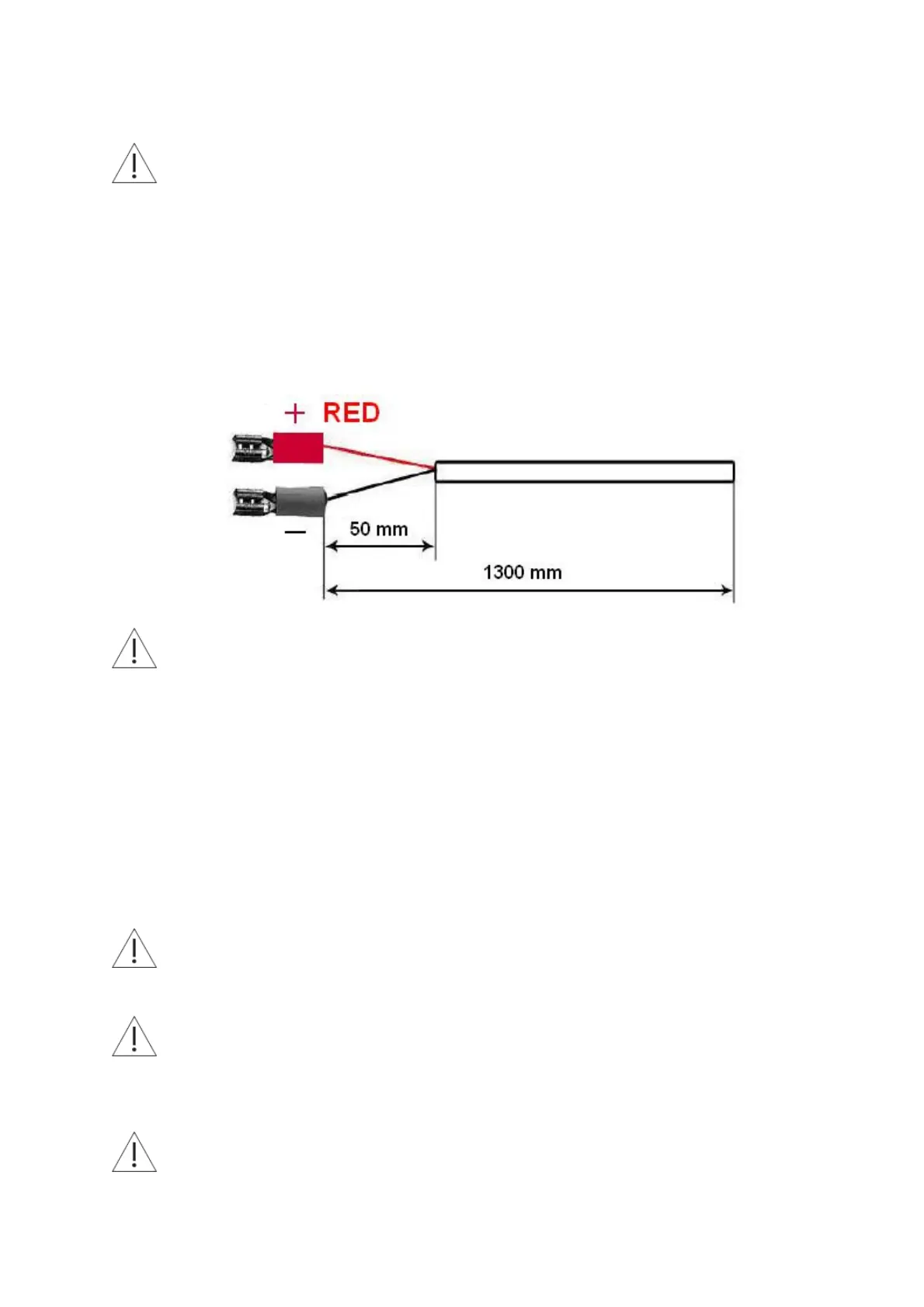 Connect the cables paying special attention to polarity ! Improper connection of