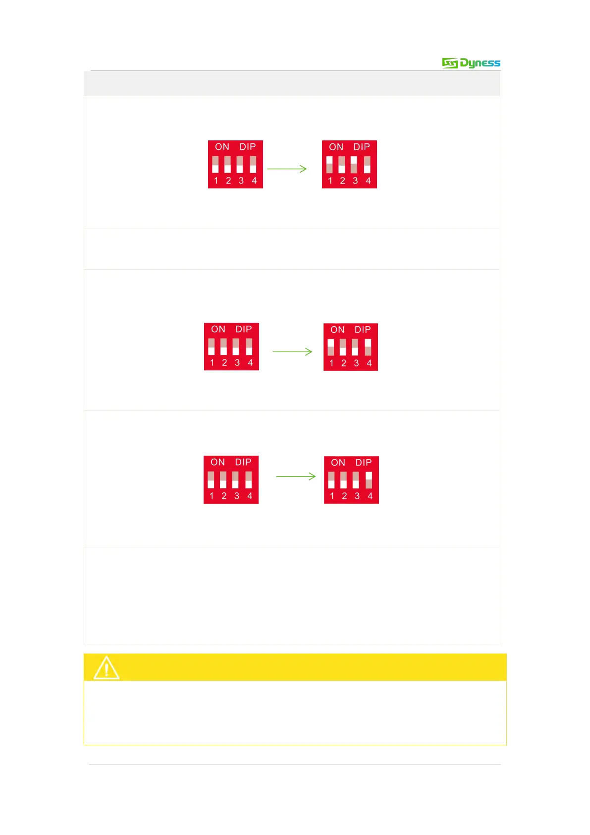 the DIP switch of slaves need to turn the “#4” to “ON” at the same time while the