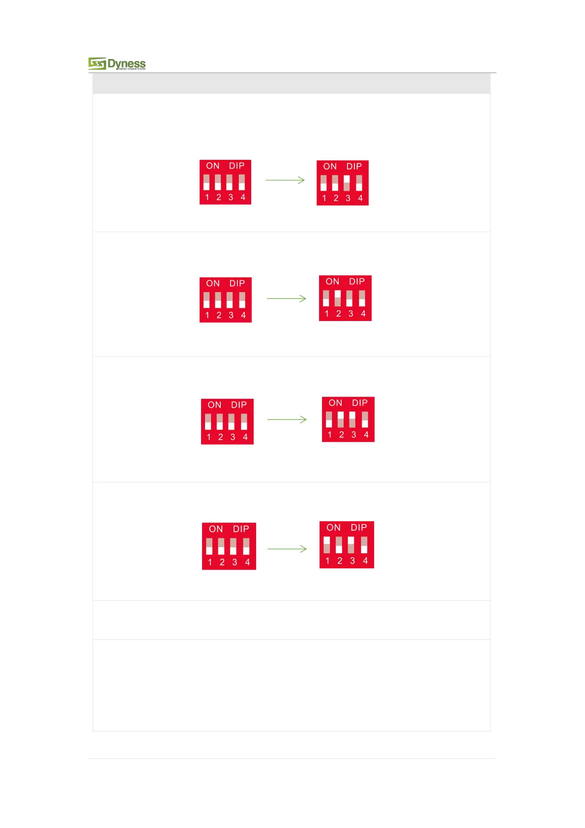 6. When you setup the master DIP as setting 1~4, all the slaves keep the DIP 0000,no