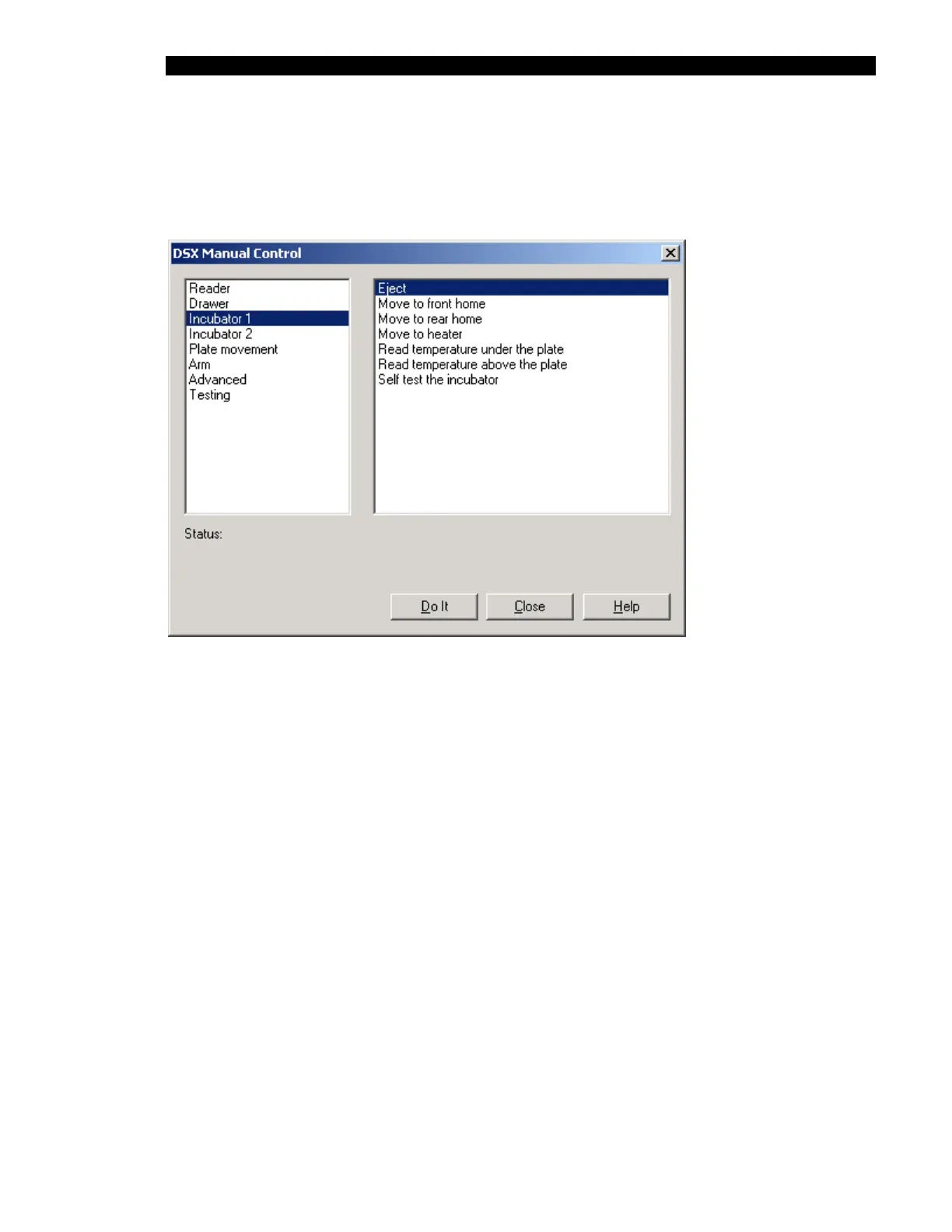 Figure 5-4 DSX Manual Control Dialog Box (Incubator Selections)