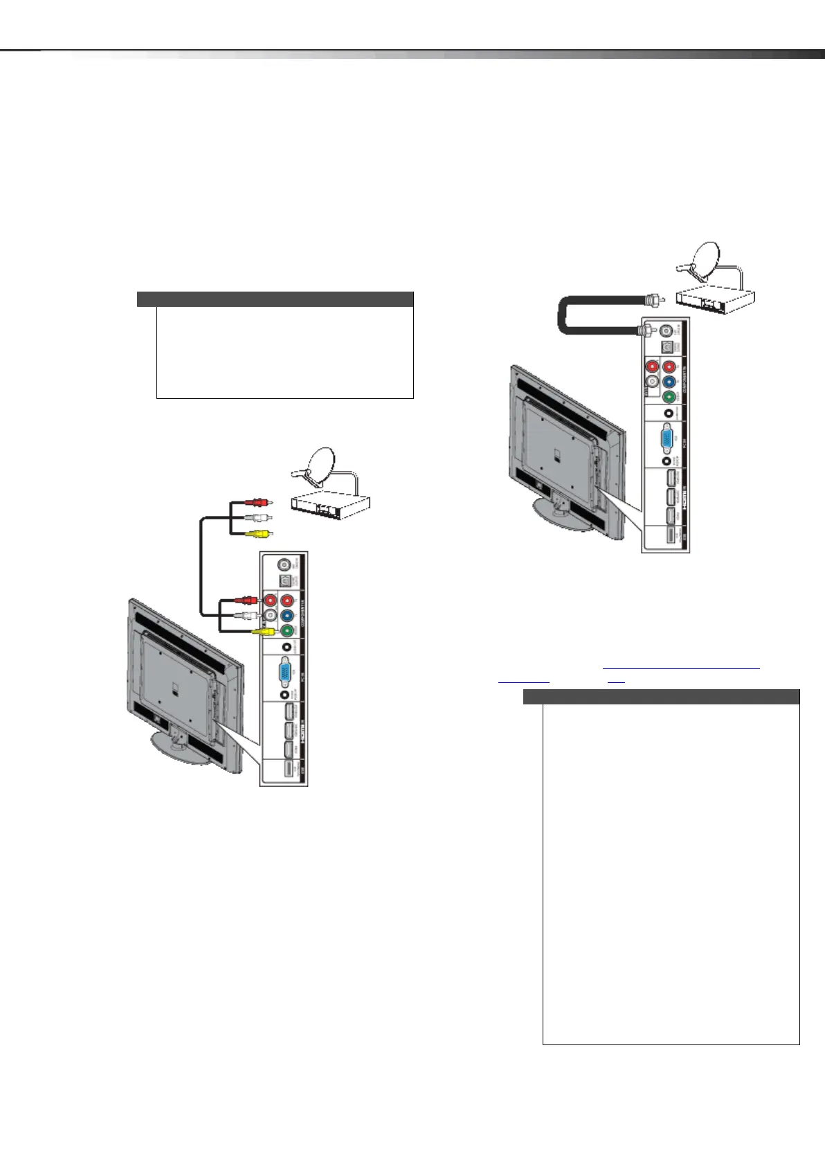 To connect a cable or satellite box using coaxial cable: