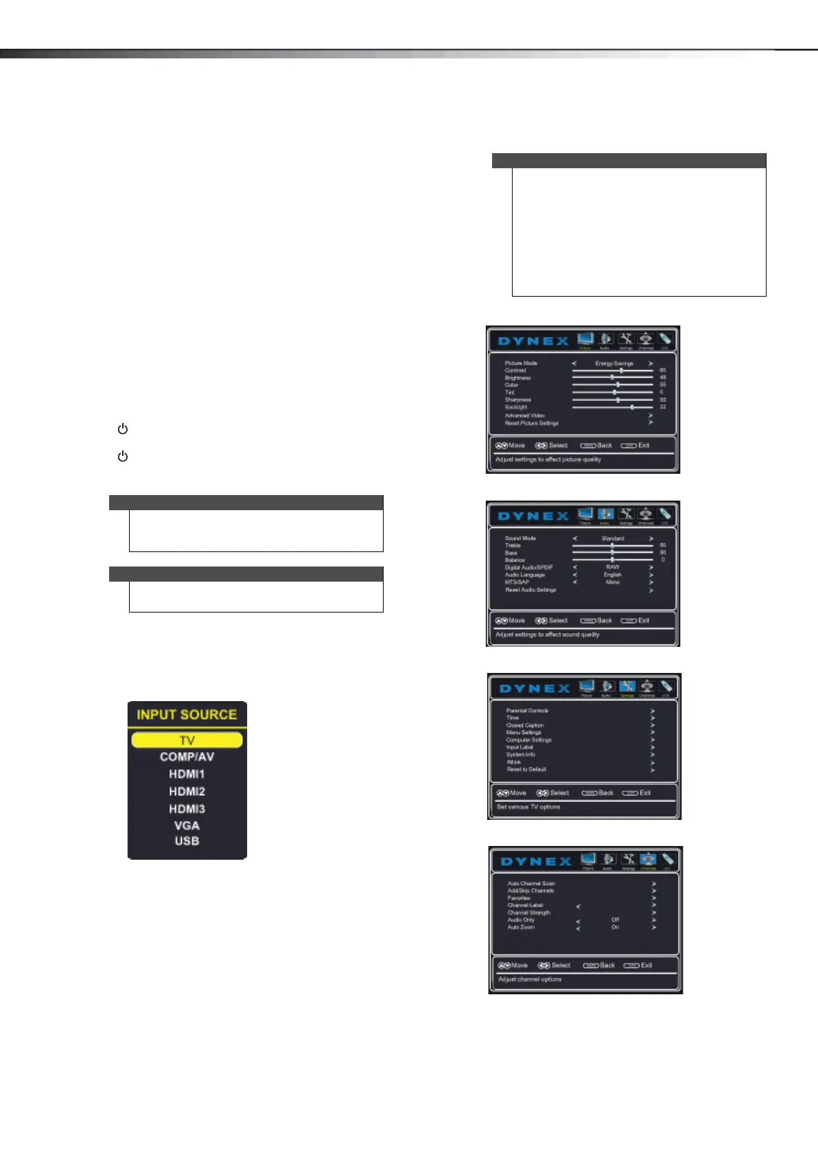 • Depending on the signal source selected, you
