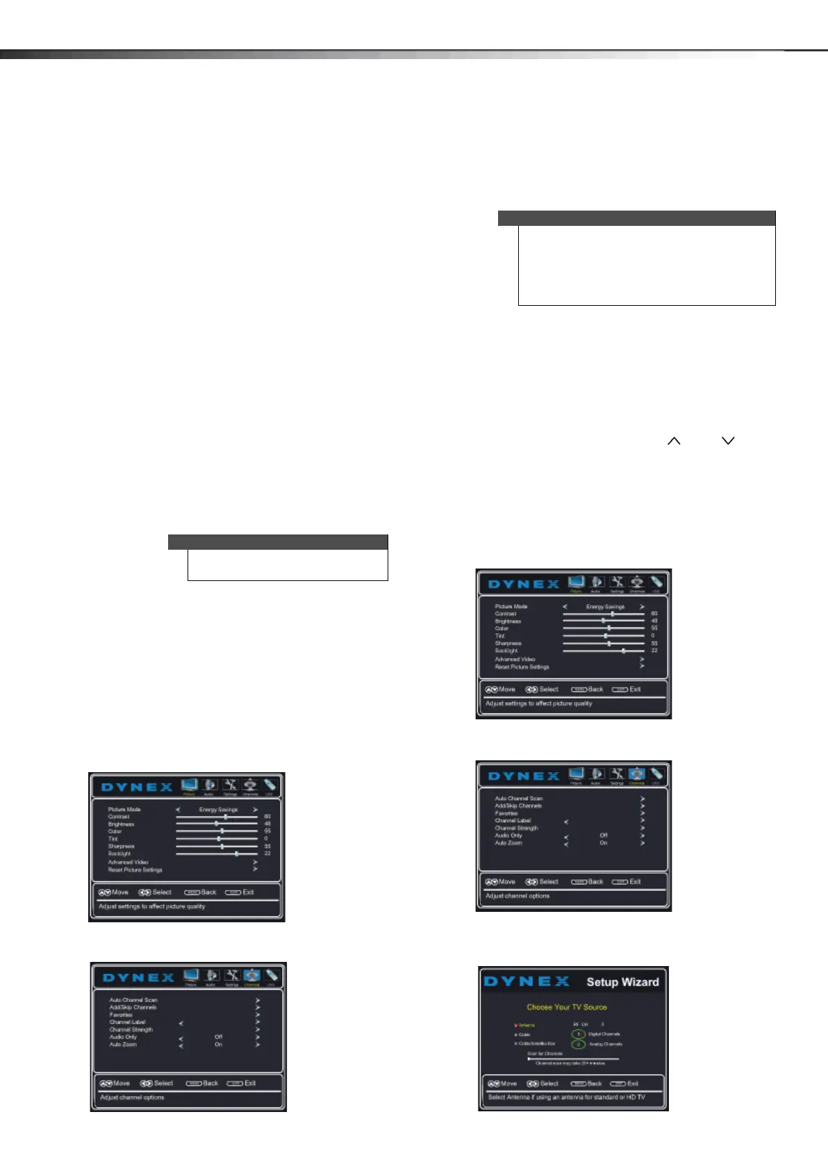 2 Press or to highlight Channels, then press or