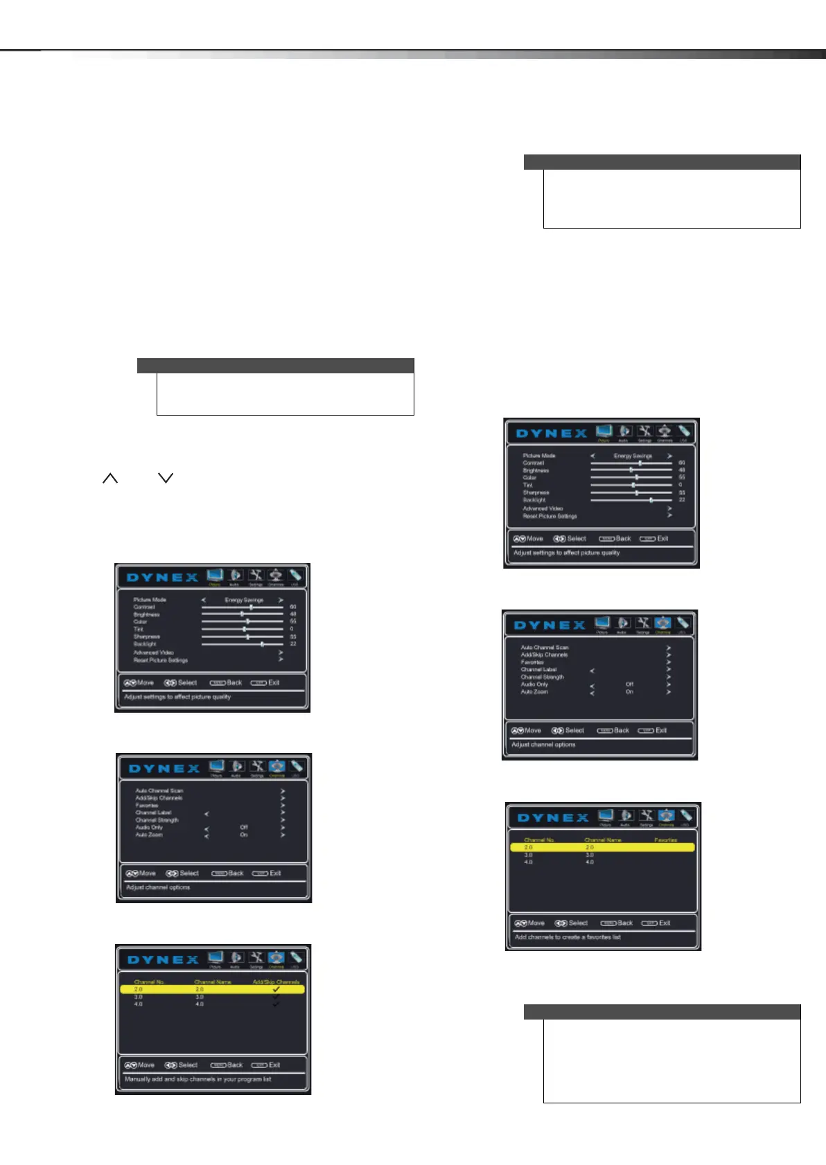 2 Press or to highlight Channels, then press or