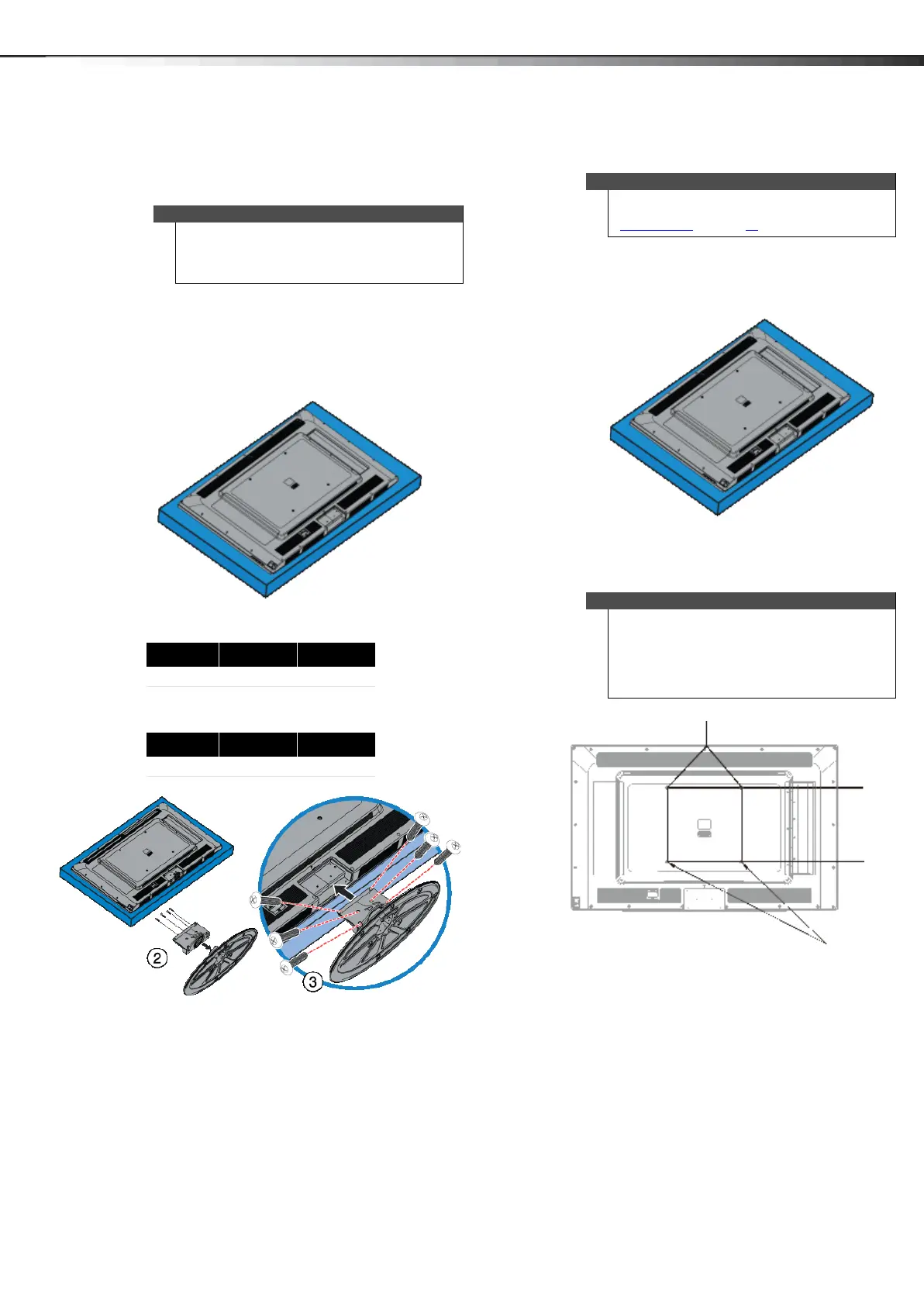 • If you plan to wall-mount your TV, do not install