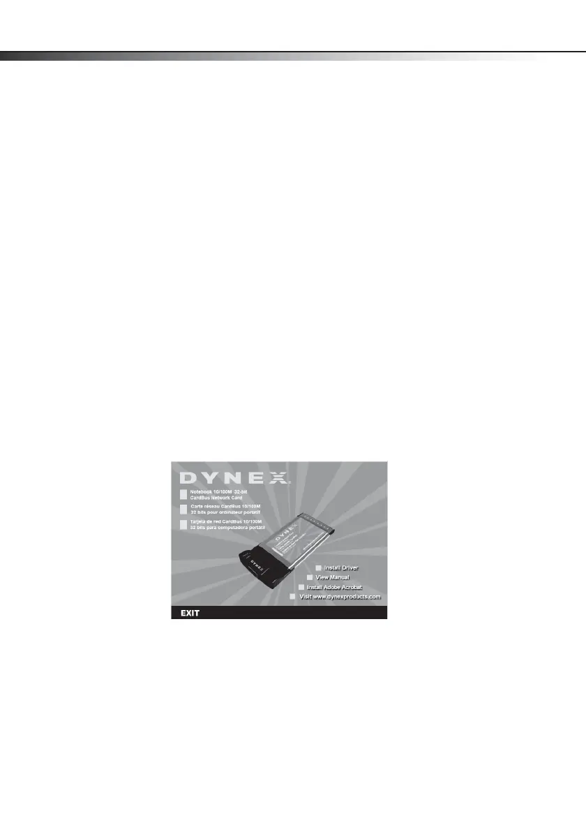 1 Insérer le CD de la carte DX-E202 dans le lecteur de CD ou de DVD. La fenêtre Dynex