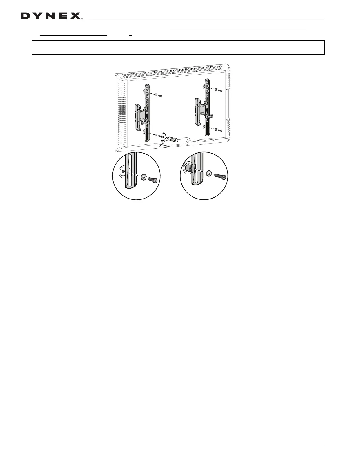 screws only enough to secure the TV brackets to the TV. DO NOT over tighten.