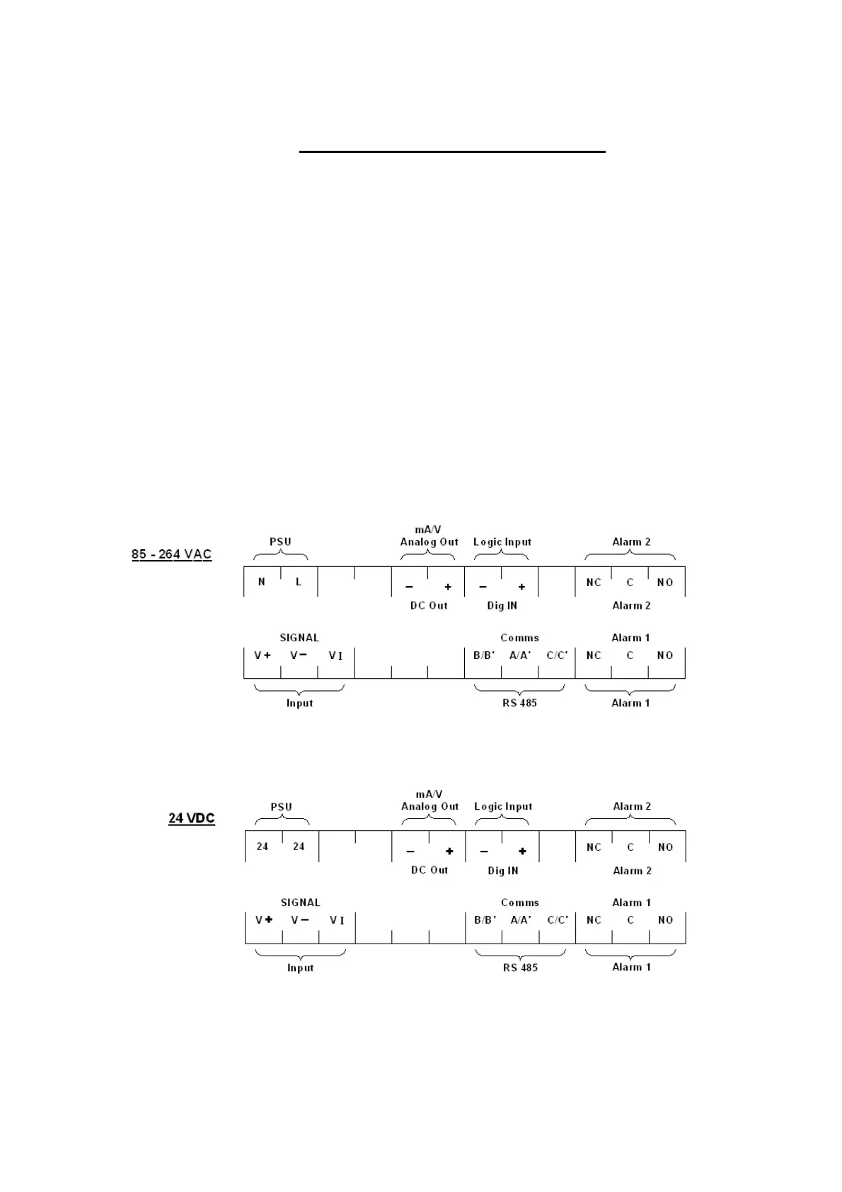 • Connect AC or AC/DC power as indicated in diagram. Note power type is dependant on