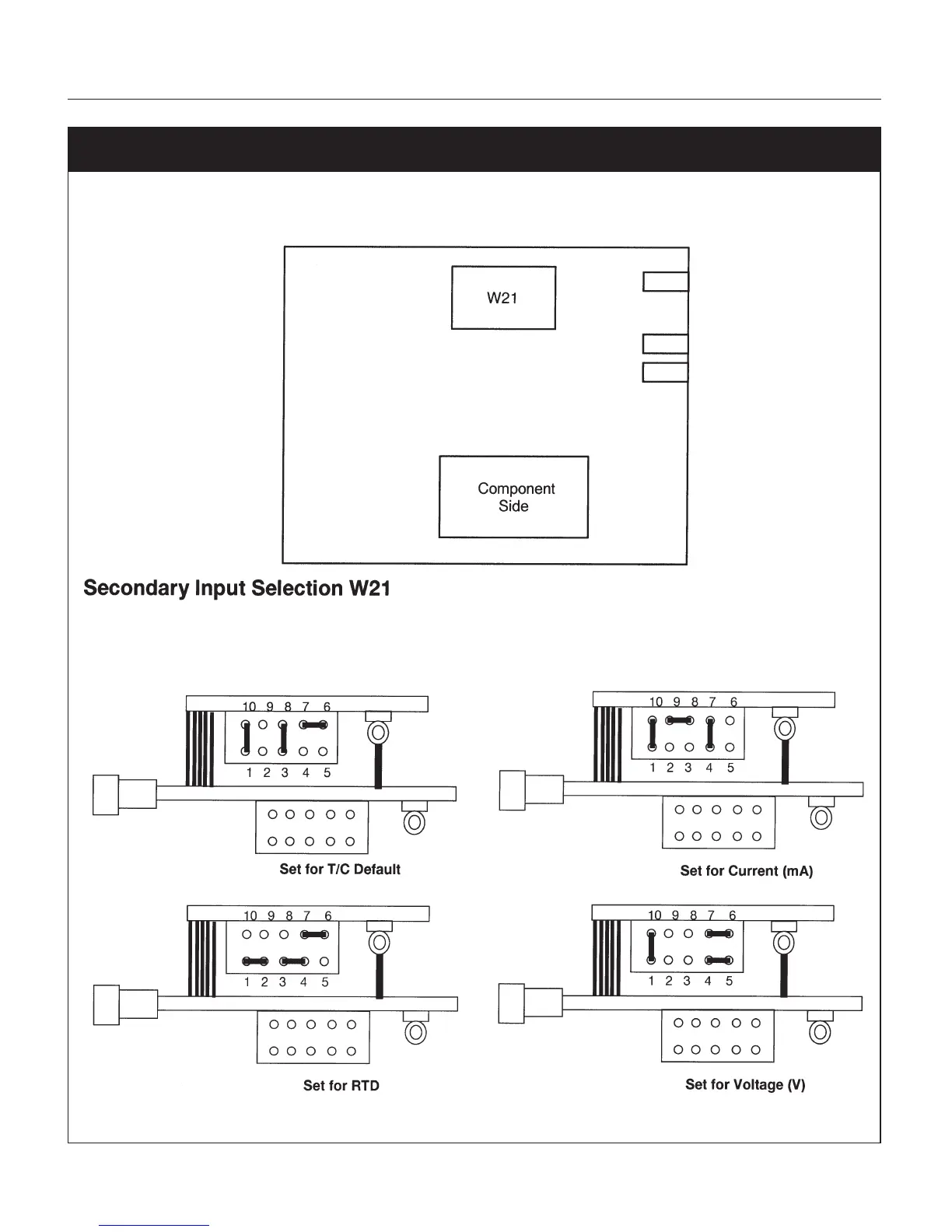 Dynisco UPR700 - Secondary Input Jumper Location; Secondary Input Selection W21