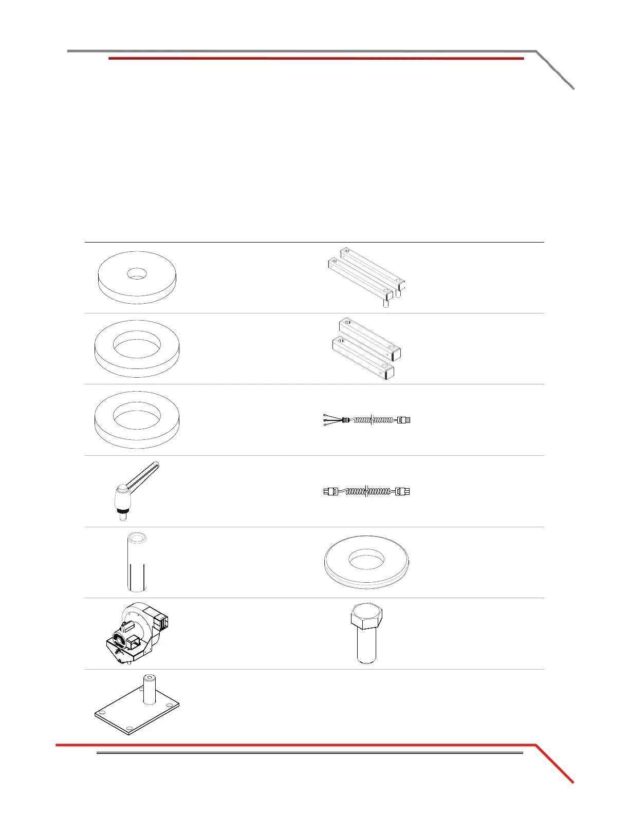 The following table lists all of the parts included in the High Pressure Blower Floor