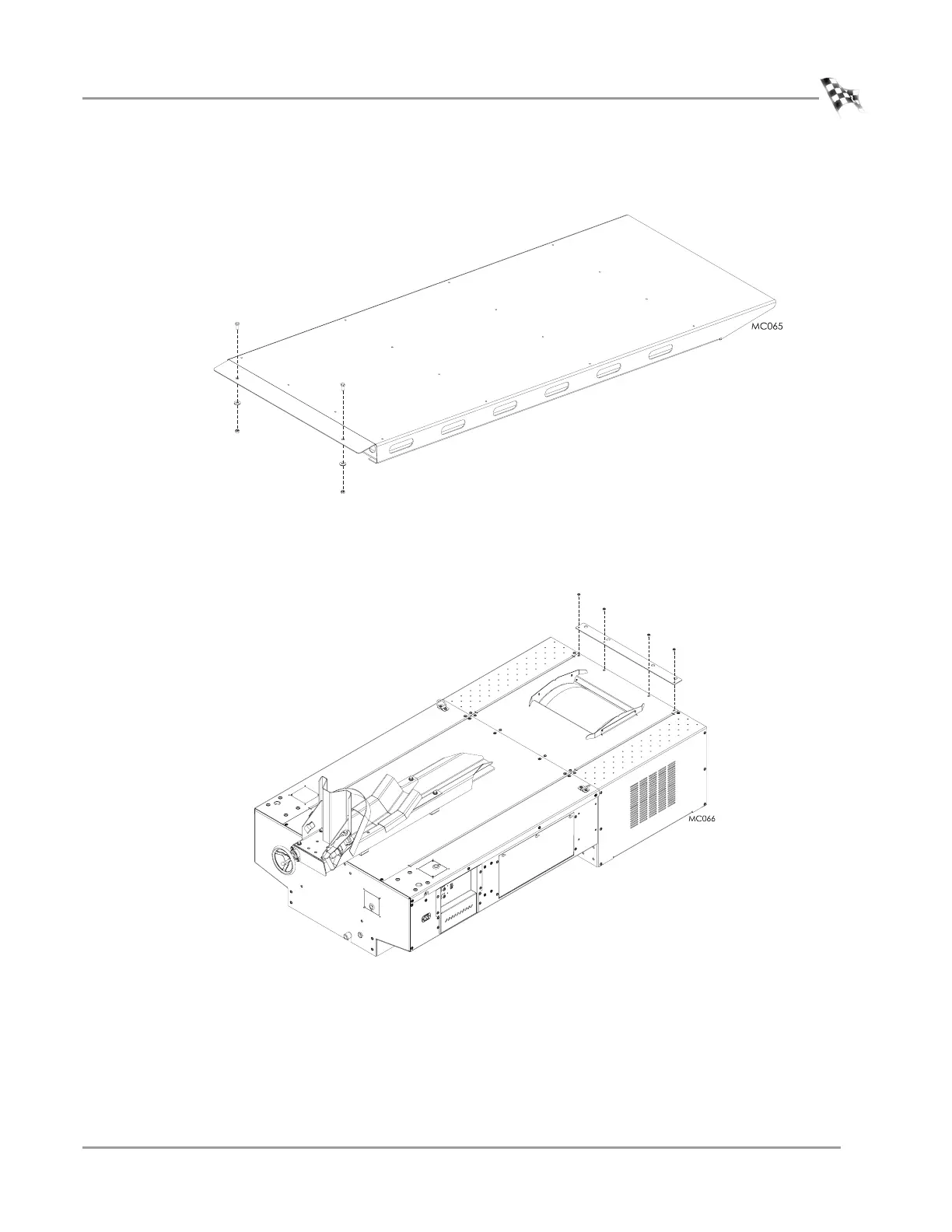 4 Remove the four 1/4-inch bolts from the rear of the drum cover.