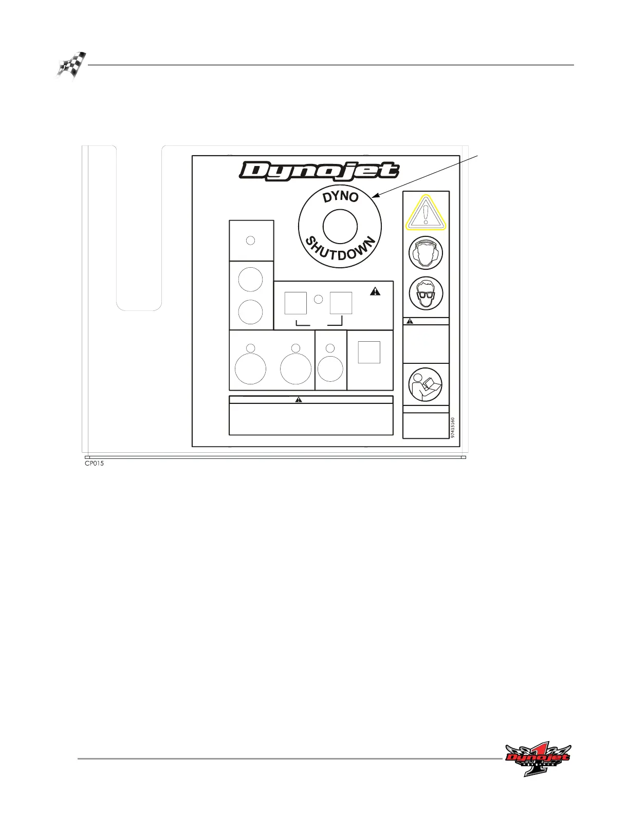 4 Place the emergency stop sticker over the dyno shutdown sticker.