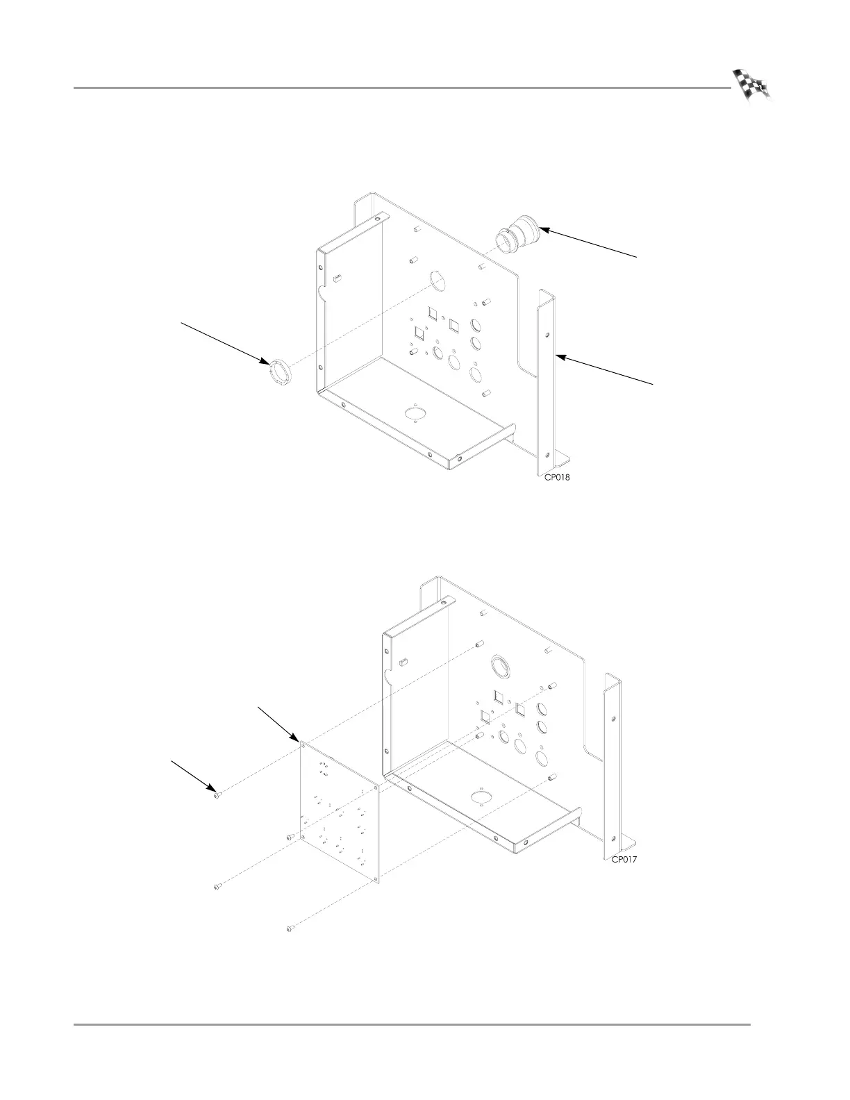 6 Secure the Button board to the control panel using the four screws removed