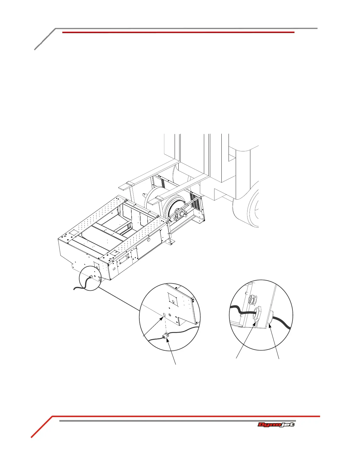 2 Slide the strain relief on the power cable through the opening in the dyno frame.