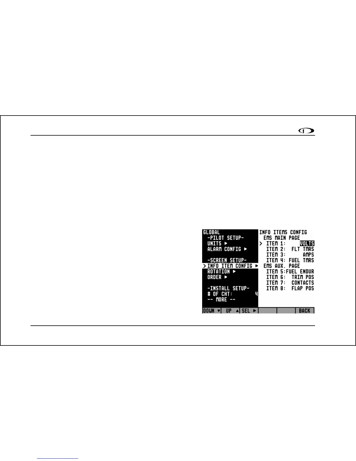 Info Item Configuration: EMS > SETUP > GLOBAL > DOWN▼ >