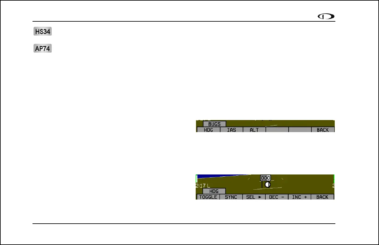 EFIS > AP > BUGS, if an AP is installed), and choose the type of bug to configure: HDG (heading), IAS (Indicated