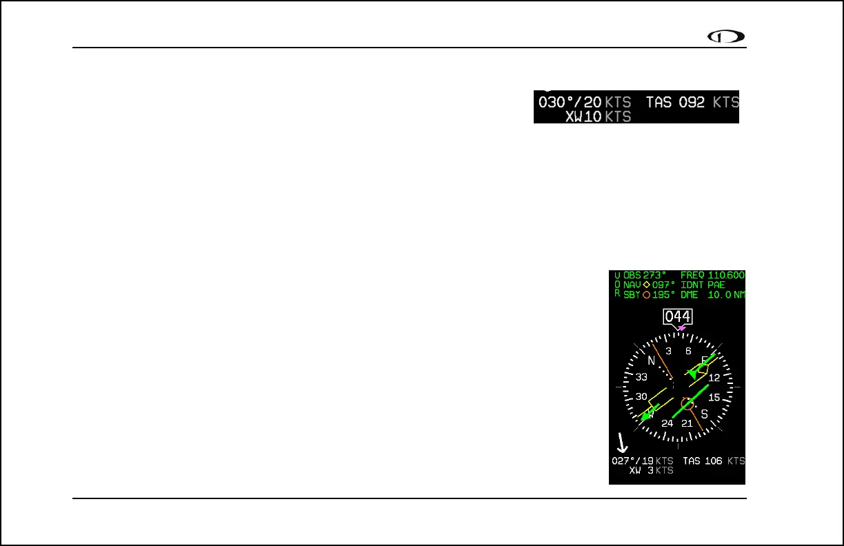 6. Winds aloft. This indicator, located at the bottom of the HSI page,