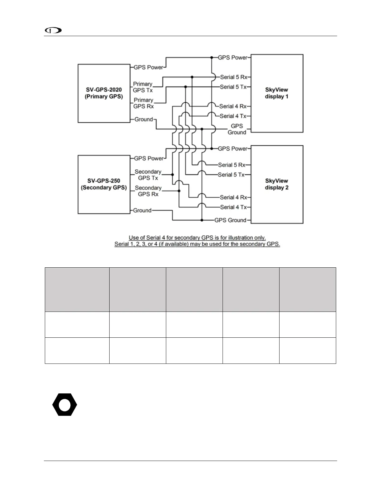 Table 70 - Secondary GPS serial connection options