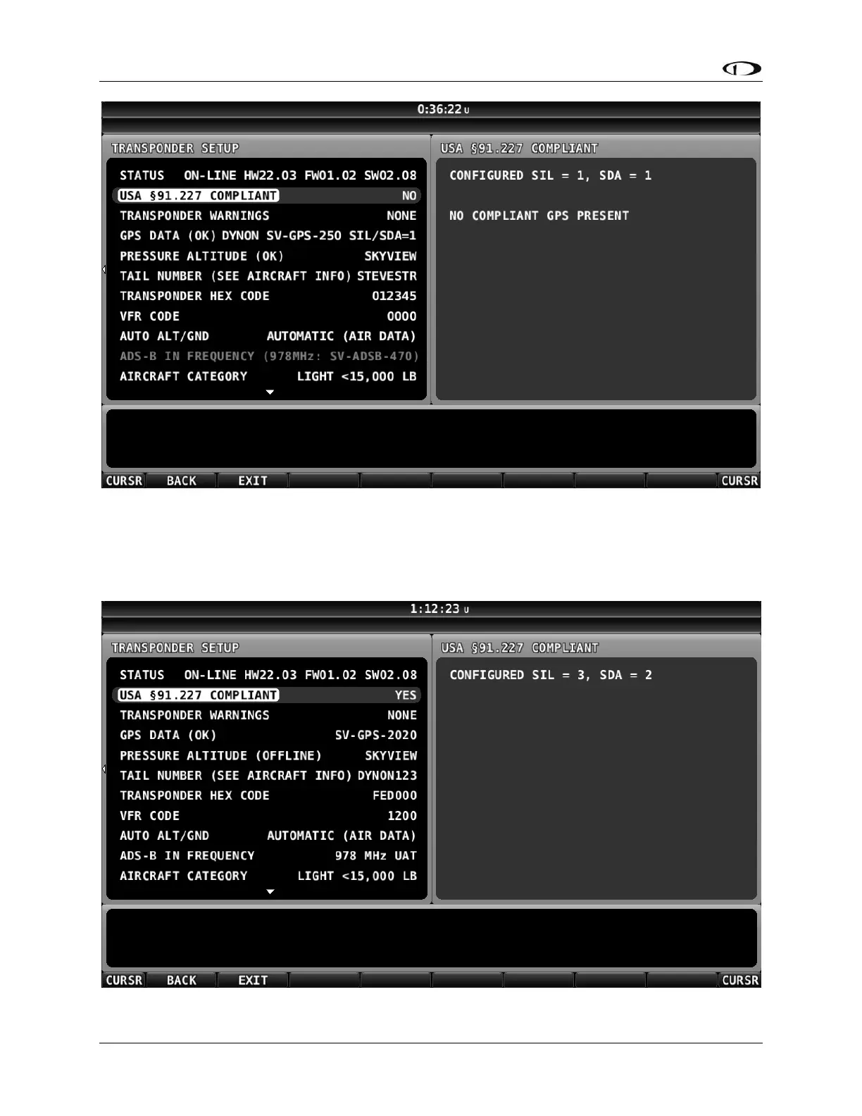 good GPS data), YES will be shown. Figure 139 below illustrates a SkyView system with all the