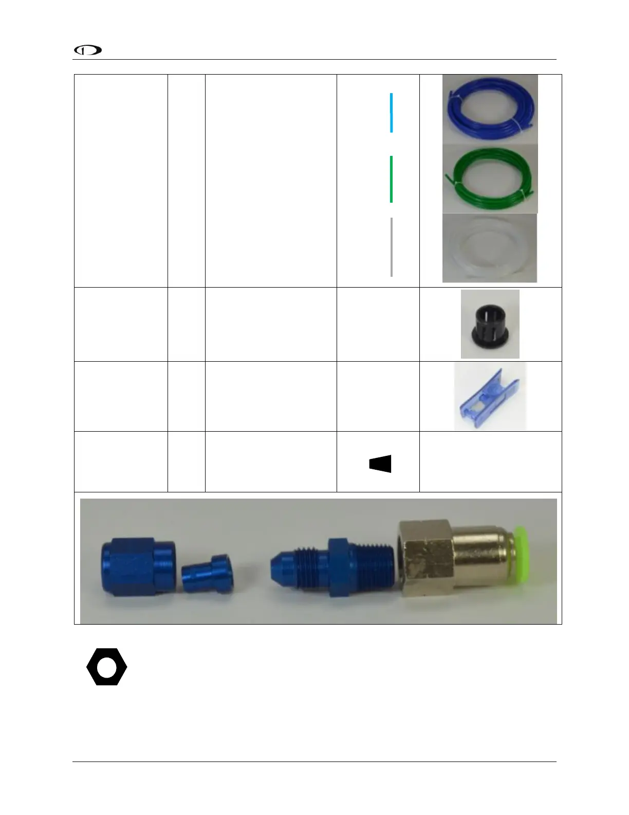 for the plumbing of this kit. Tubing is mounted into these fittings using stainless steel retainers
