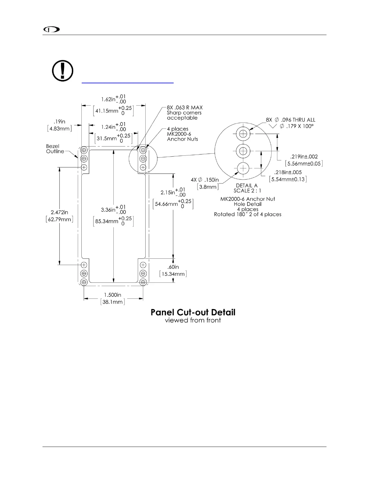 Figure 194 SV-AP-PANEL Panel Cutout and Mounting Hole Dimensions - NOT ACTUAL SIZE