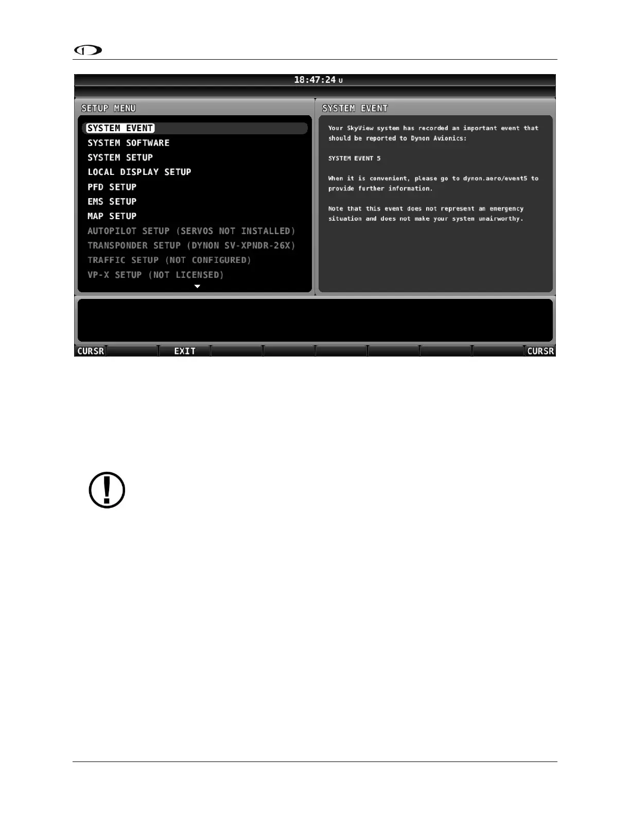 If no critical system events have occurred on your SkyView display, “SYSTEM EVENT” will not