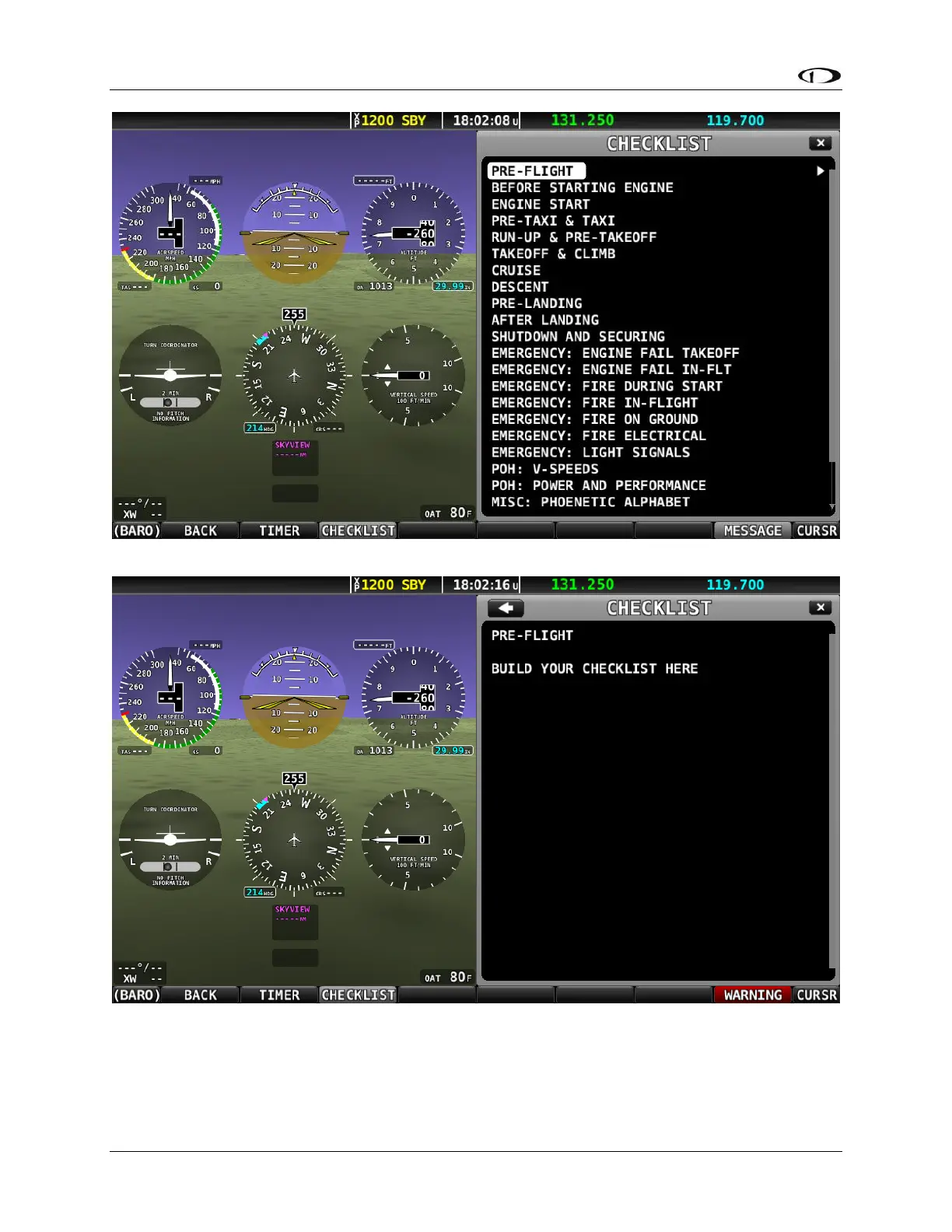 The Checklist will continue to be displayed until the CHECKLIST button is pressed again (the