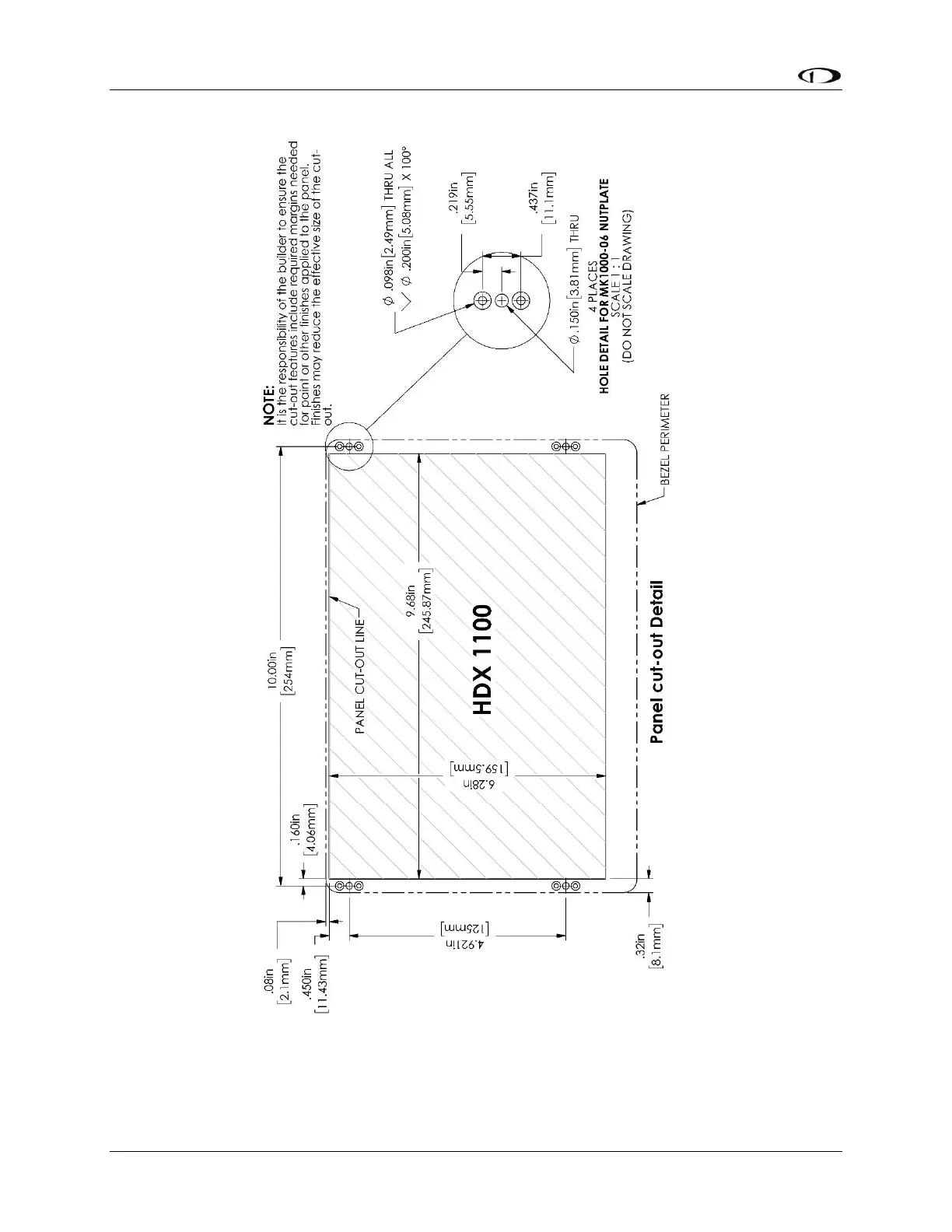 Figure 28 SV-HDX1100 Panel Cutout and Mounting Hole Dimensions - NOT ACTUAL SIZE