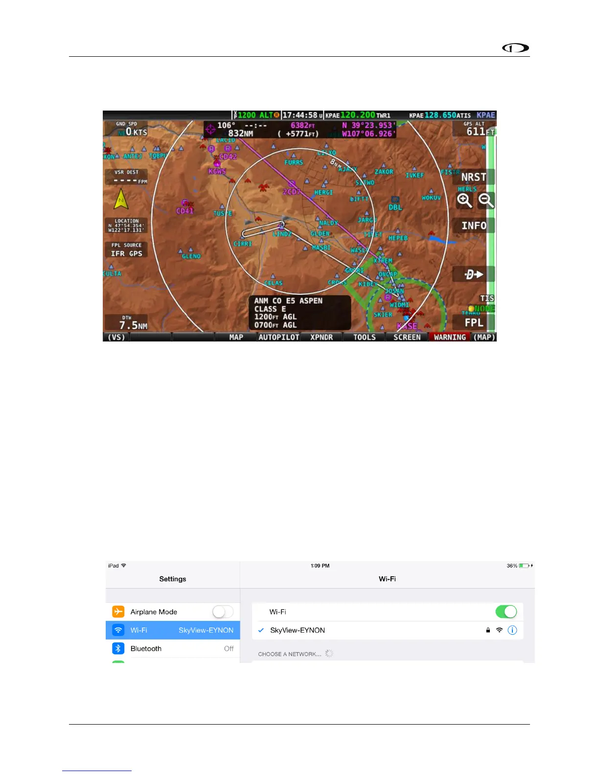 • Set up the Wi-Fi network on SkyView; see the SkyView Installation Guide for details.