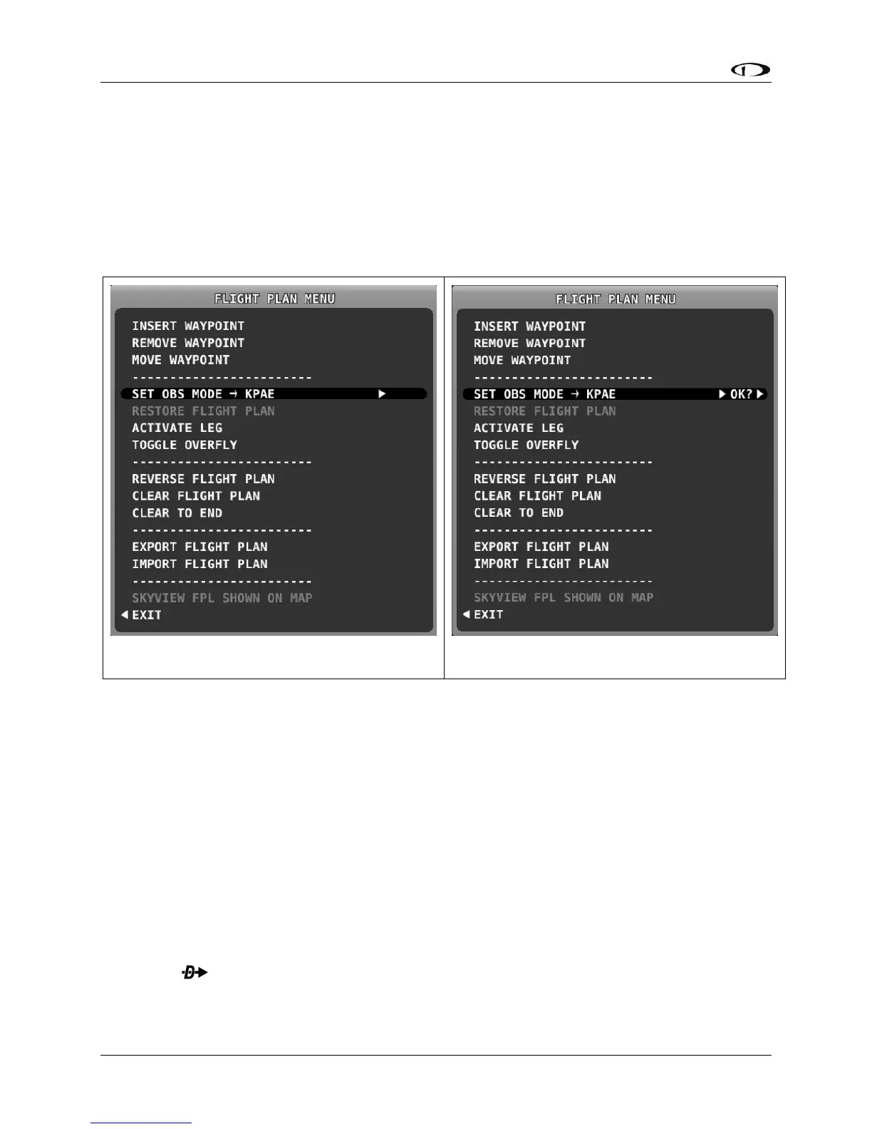 • SET OBS MODE: Select to turn on OBS mode using the selected waypoint. When OBS