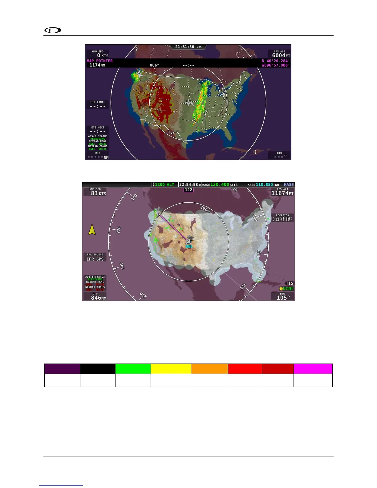 Dynon Avionics SkyView HDX - NEXRAD Legend; NEXRAD Data Coverage