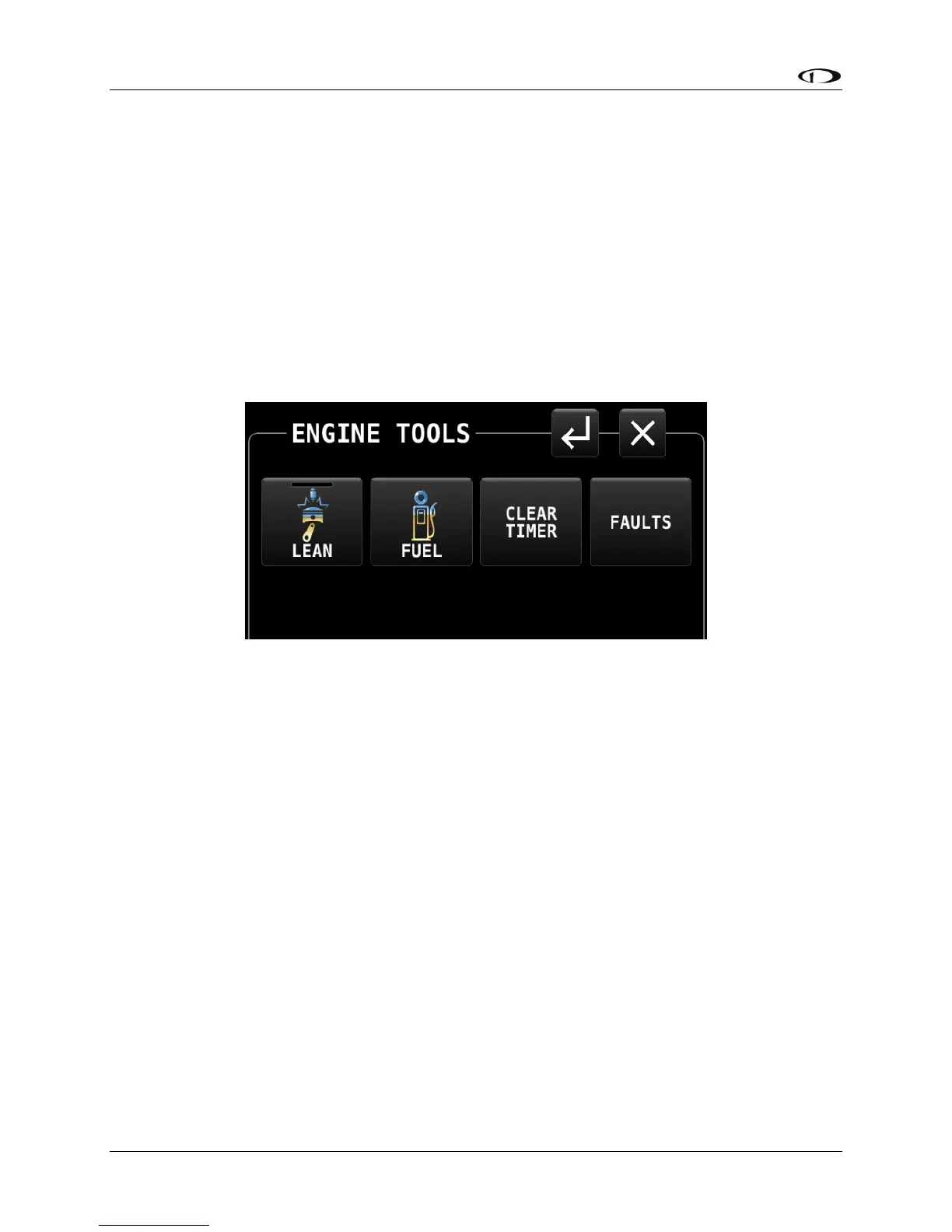 Main Menu, then selecting the ENGINE TOOLS icon. The ENGINE page will appear, as shown
