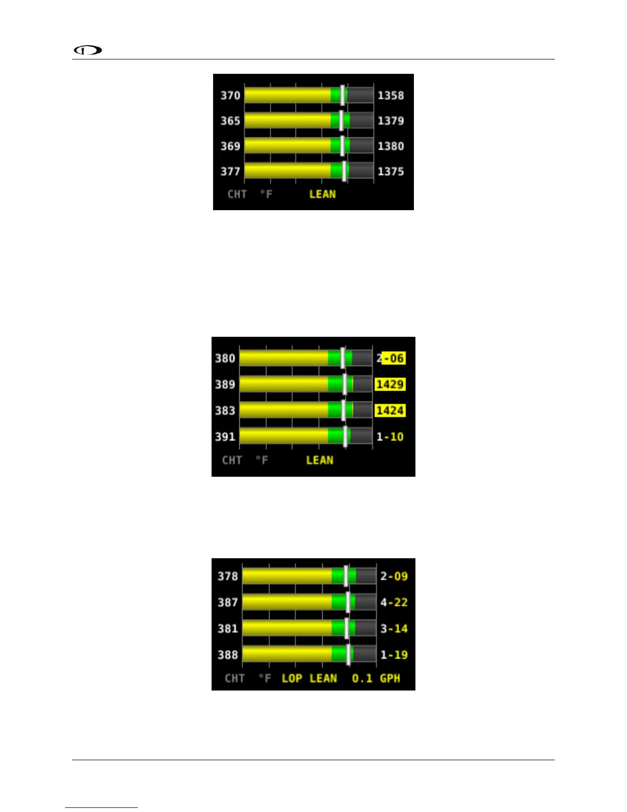 first and last cylinder peaks is displayed. If the fuel flow decreases, it is shown as Lean of Peak. If