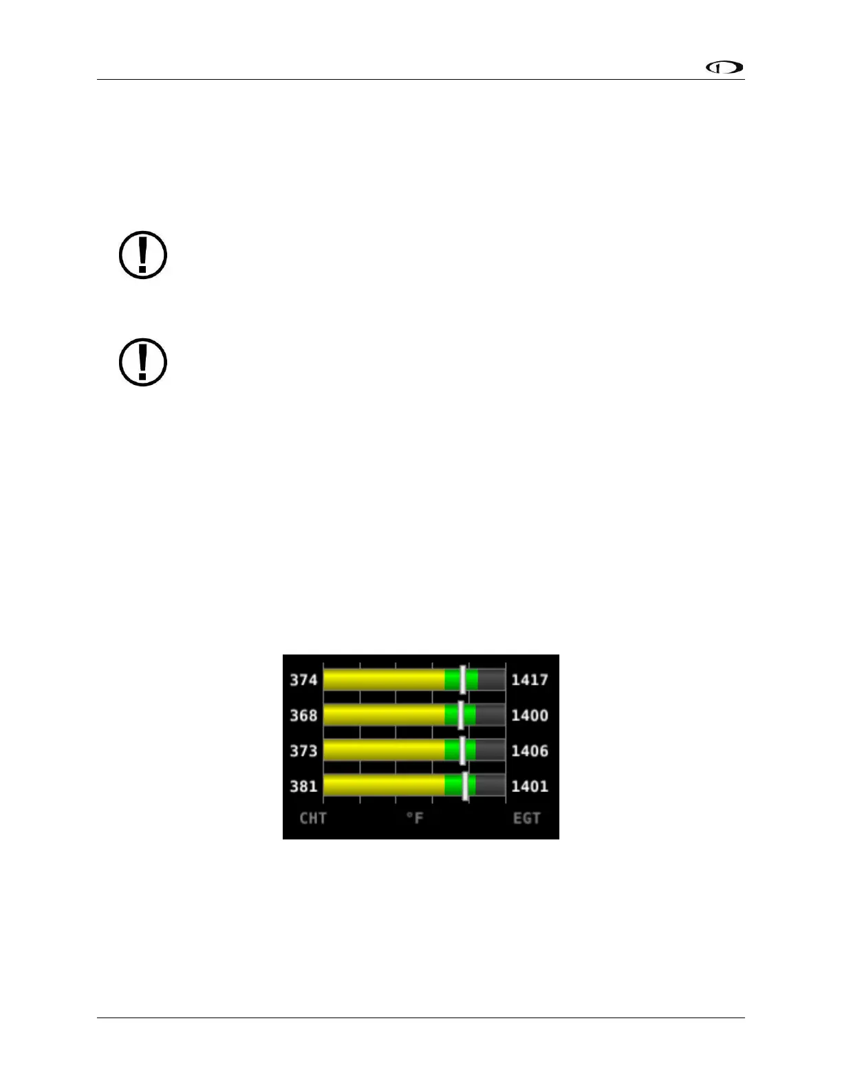 marks” that overlay the EGT bars. When caution or alarm points are red, this tick mark changes