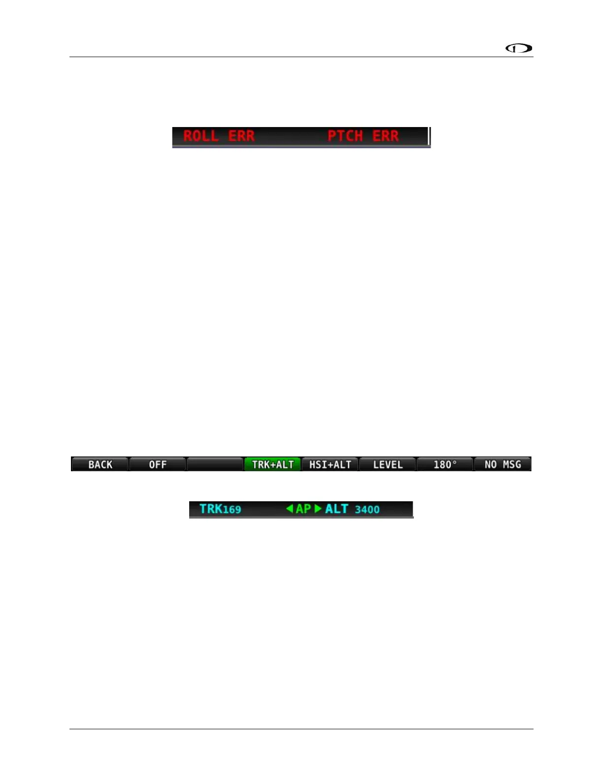 failed, ROLL ERR and/or PTCH ERR are displayed in the Top Bar: