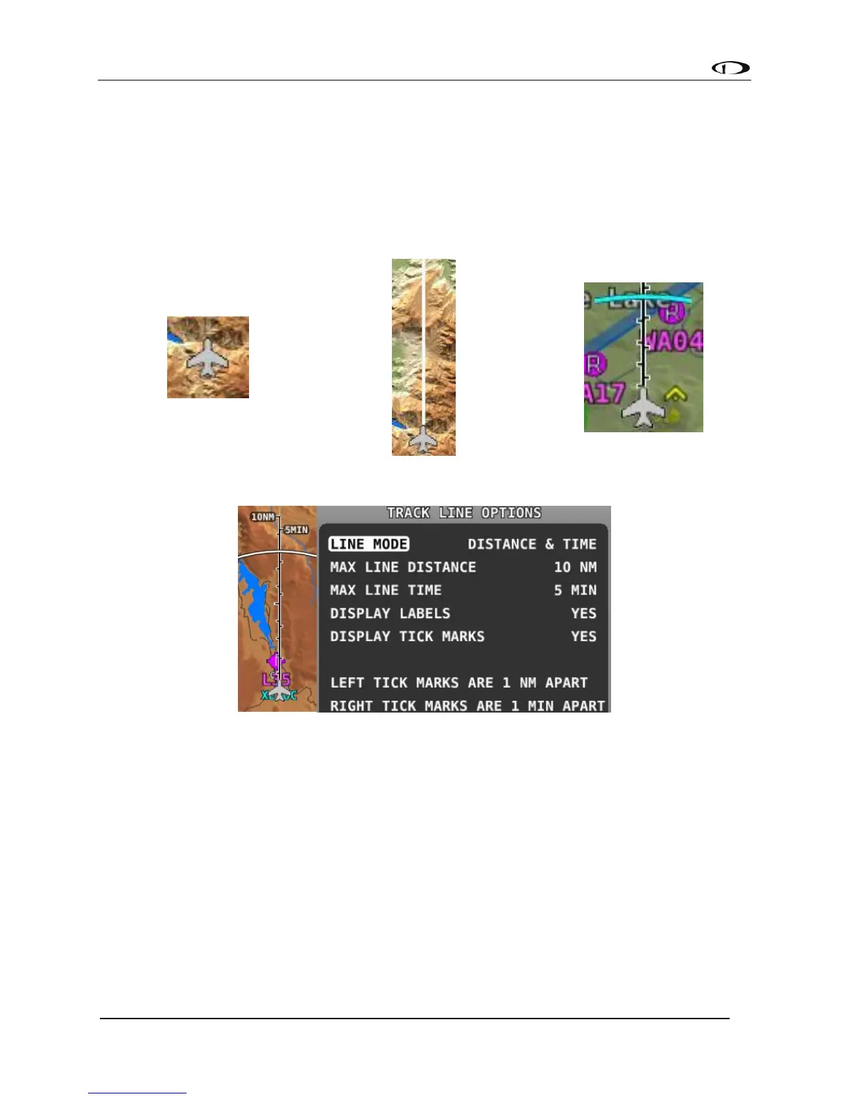 The Altitude Intercept Arc is also drawn on the ground track line (on Terrain, Enroute Charts,