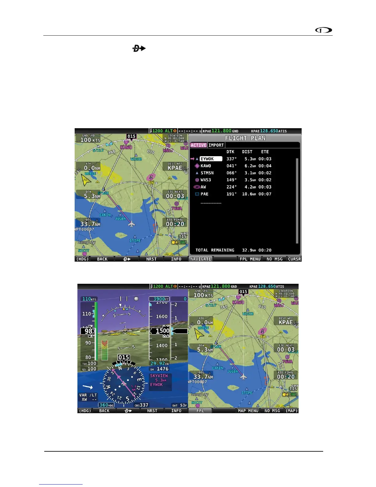 Figure 147 - Active Flight Plan: HSI and MAP Depictions
