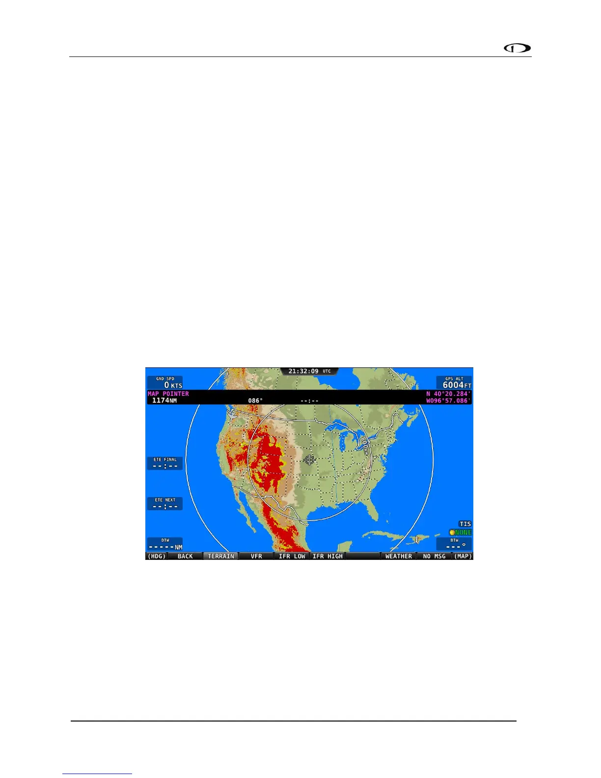 Terrain highlighting is always displayed, but in muted tones, to allow the NEXRAD weather / TFR